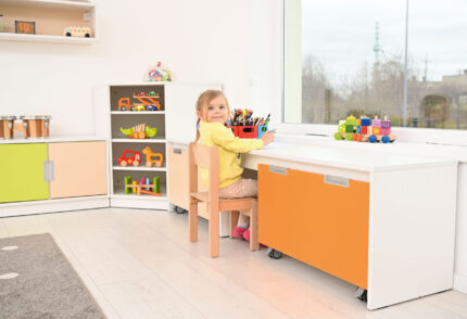 Kėdutė skirtingų spalvų ir dydžių su veltinio kojelėmis