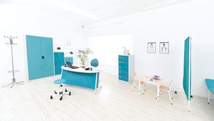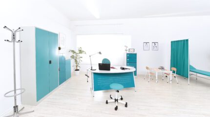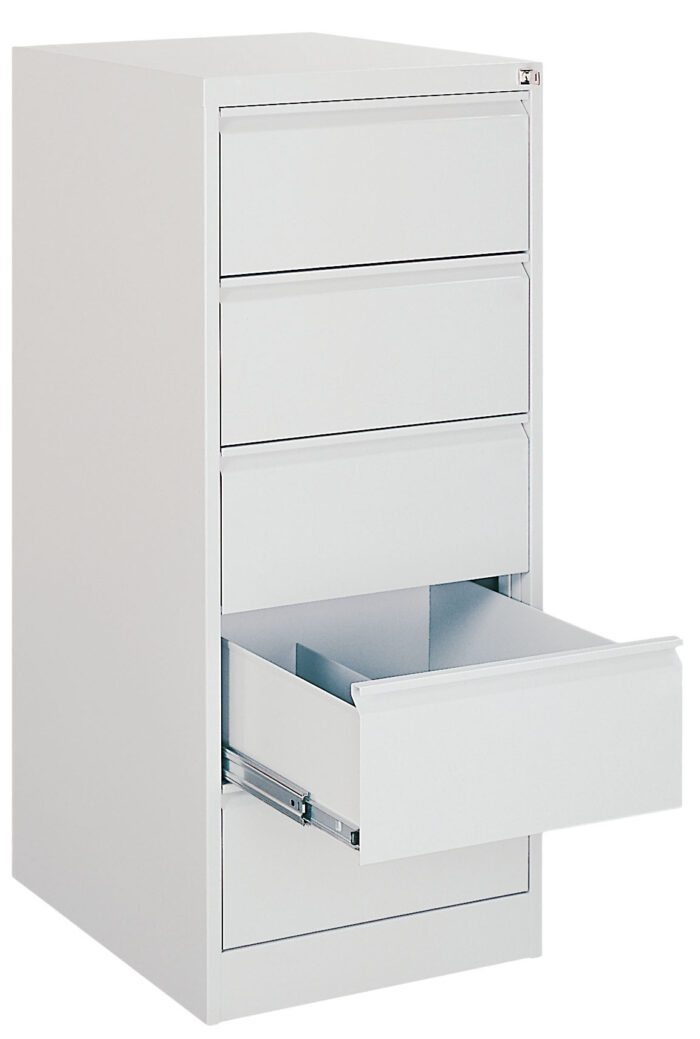 Metalinės spintos, pagamintos iš plieno lakšto, apatinė dalis pagaminta iš cinkuoto metalo lakšto. Baldai turi specialų mechanizmą, leidžiantį ištraukti tik vieną stalčių, kuris apsaugo spintelę nuo kritimo. Centrinio užrakto stalčiai. Maksimali kiekvieno stalčiaus apkrova yra apie 60 kg.