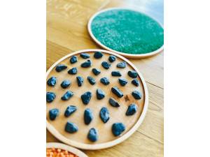 Aštuonių apvalių sensorinių diskų rinkinys, skirtas lavinti lytėjimo pojūtį, pusiausvyrą ir koordinaciją. Kiekvienas medinis diskas turi skirtingą tekstūrą – nuo minkštų pomponų iki metalo ar druskos – skatinant įvairius jutiminius potyrius.