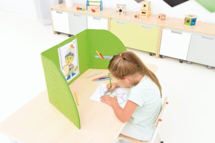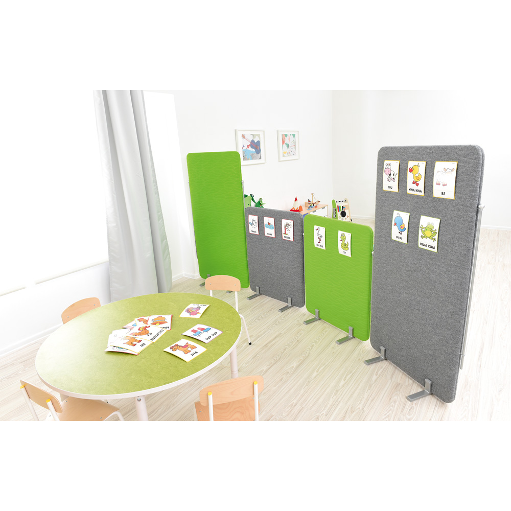 Aukštos garso izoliacijos ekranas su standžiu audiniu dengtu rėmu, sumontuotas ant aliuminio stovų. Galimybė sujungti kelis ekranus skirtingais kampais. Kiekviename ekrane yra: