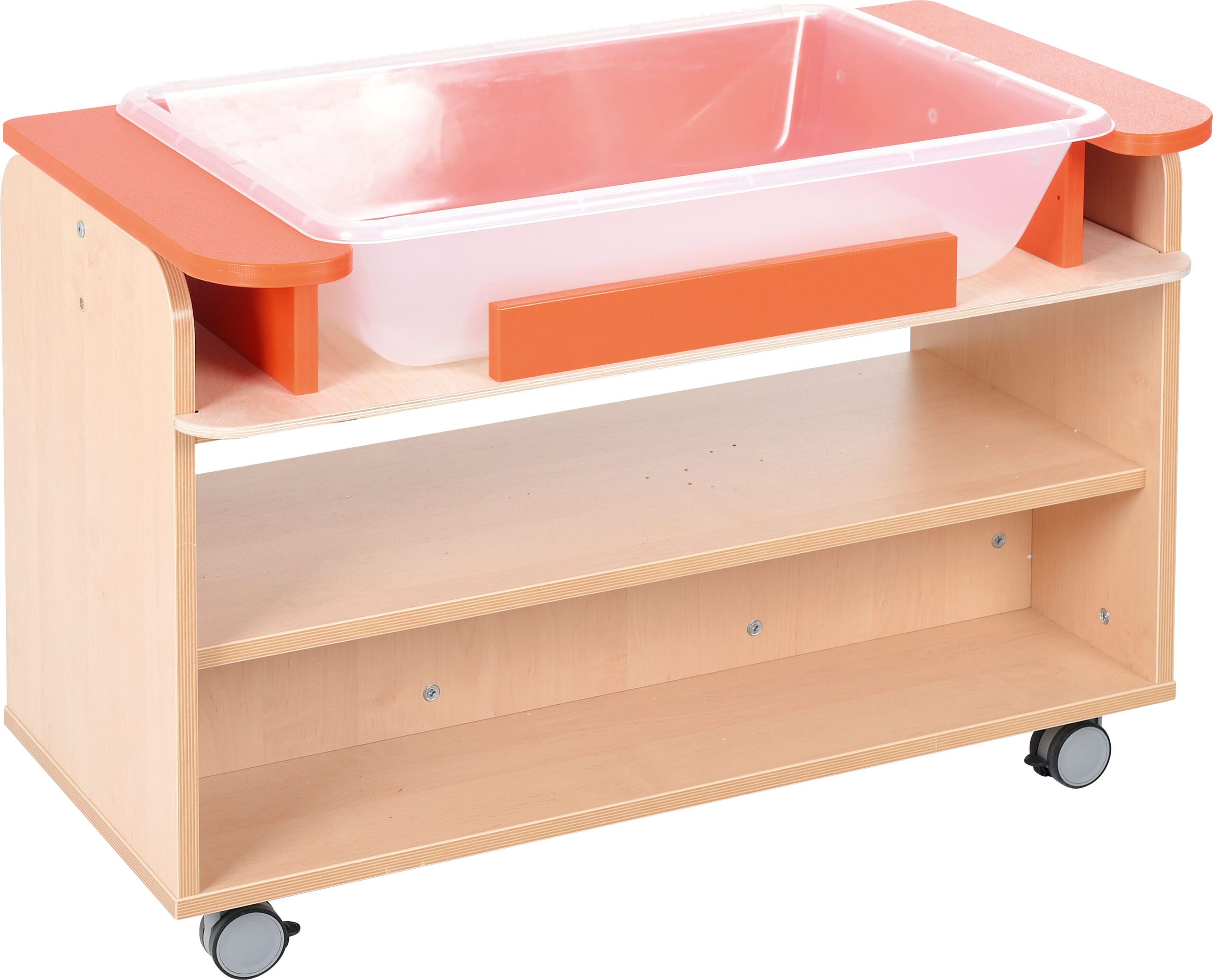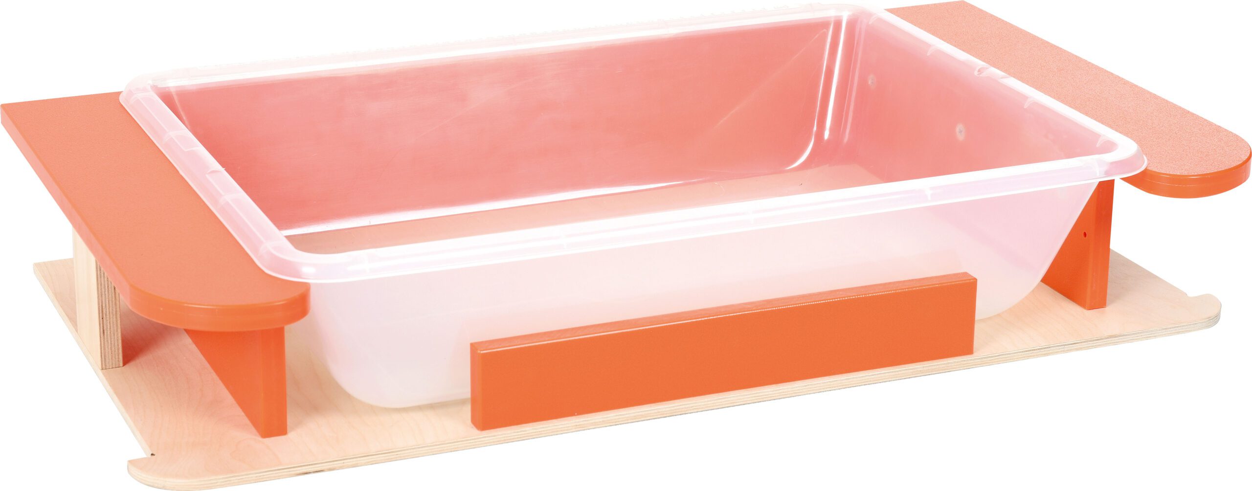 Padėklas ir oranžiniai elementai pagaminti iš plastiko. Pagaminta iš 18 mm storio laminuotos beržo spalvos plokštės, su ABS multiplex ir faneros apvadu.