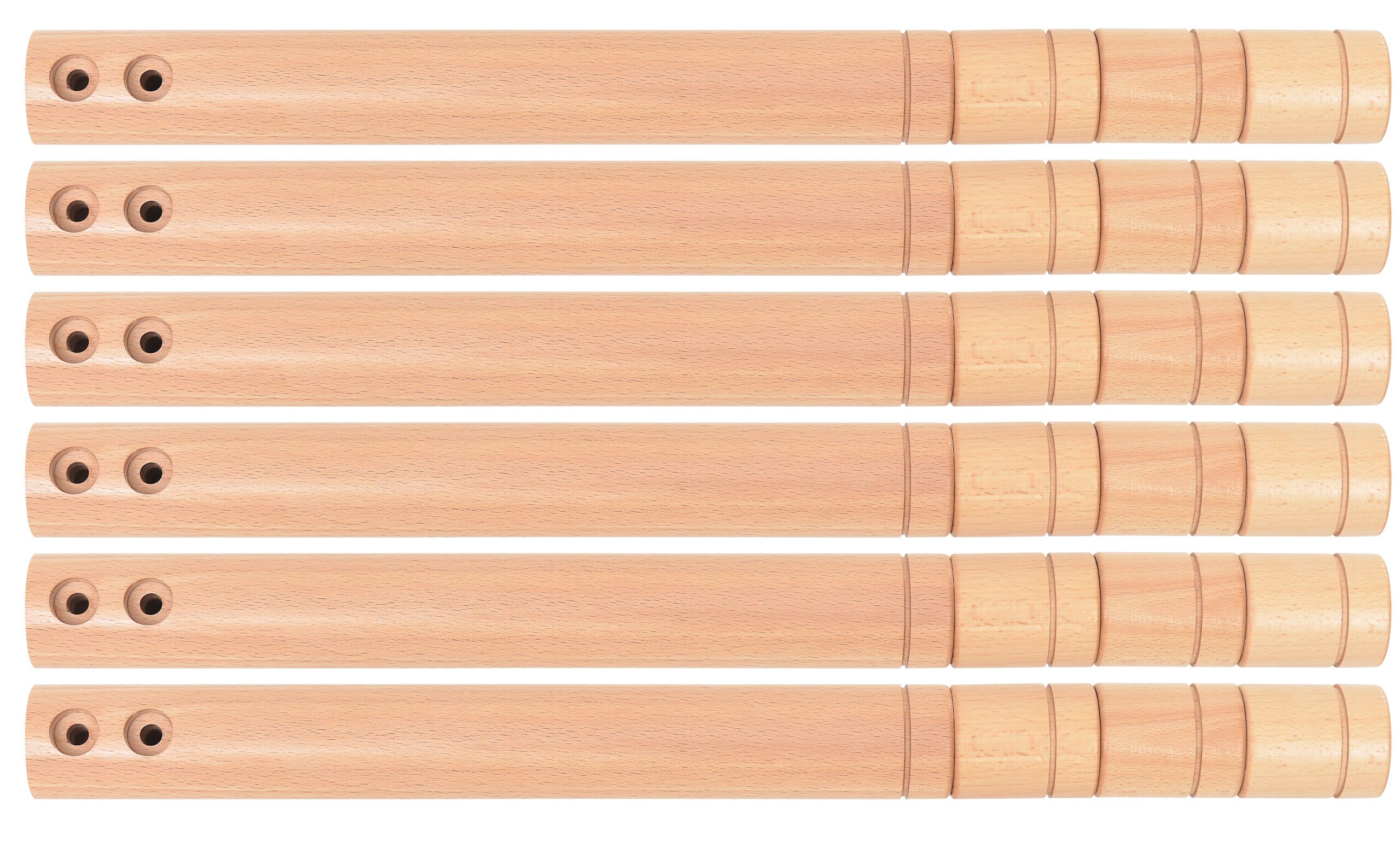 Medinių stalo kojų komplektas, skirtas šešiakampiams stalviršiams. Kojos tvirtinamos varžtais (pridedami prie stalviršių) ir leidžia reguliuoti stalo aukštį naudojant skirtingas prisukamas kojų galūnes. Galima išgauti 3 arba 4 stalo aukščius – priklausomai nuo varianto.