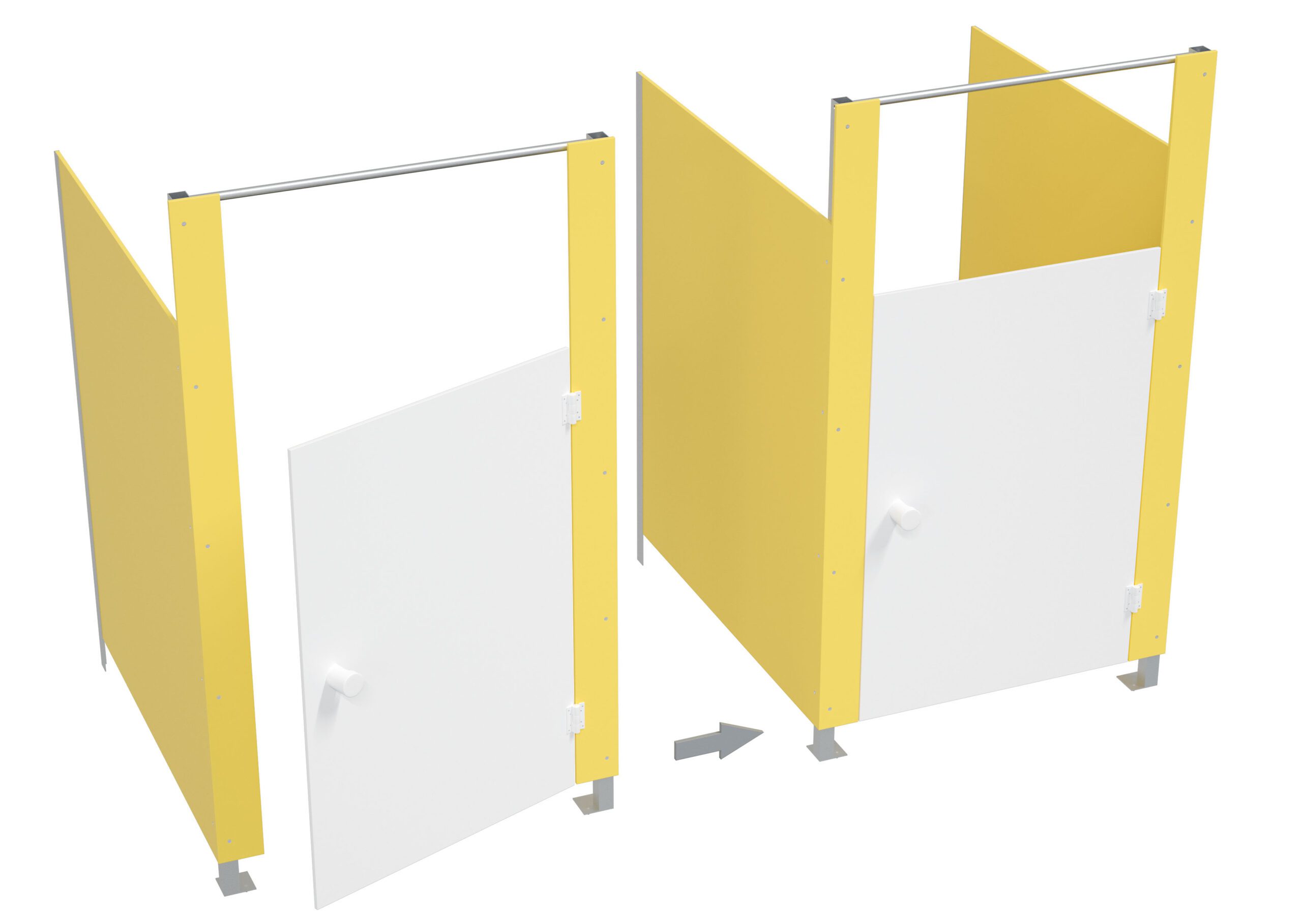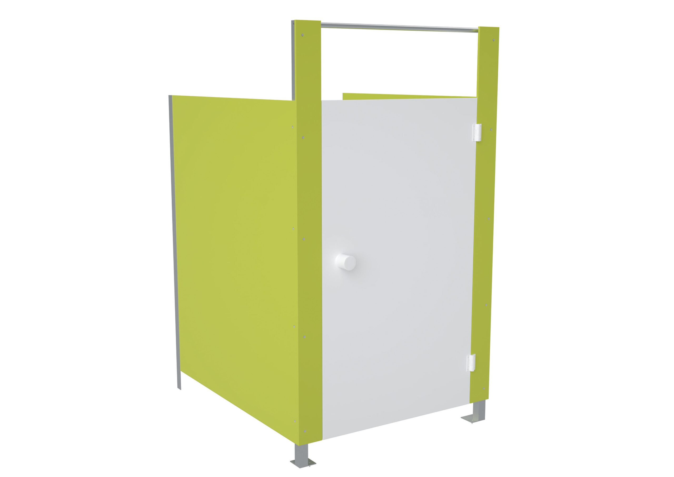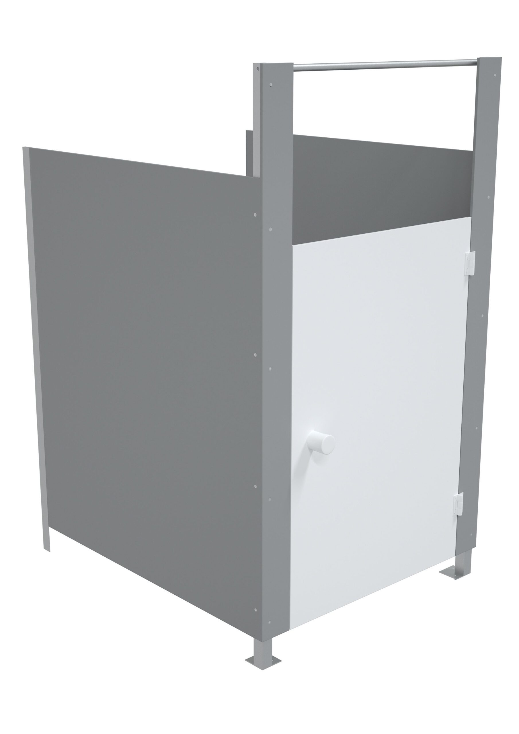 Funkcinė tualeto kabina, kurią galima rinktis iš 5 spalvų, su aliuminiais kampiniais laikikliais ir metaliniu rėmu. Montuojama tiesiai ant grindų.