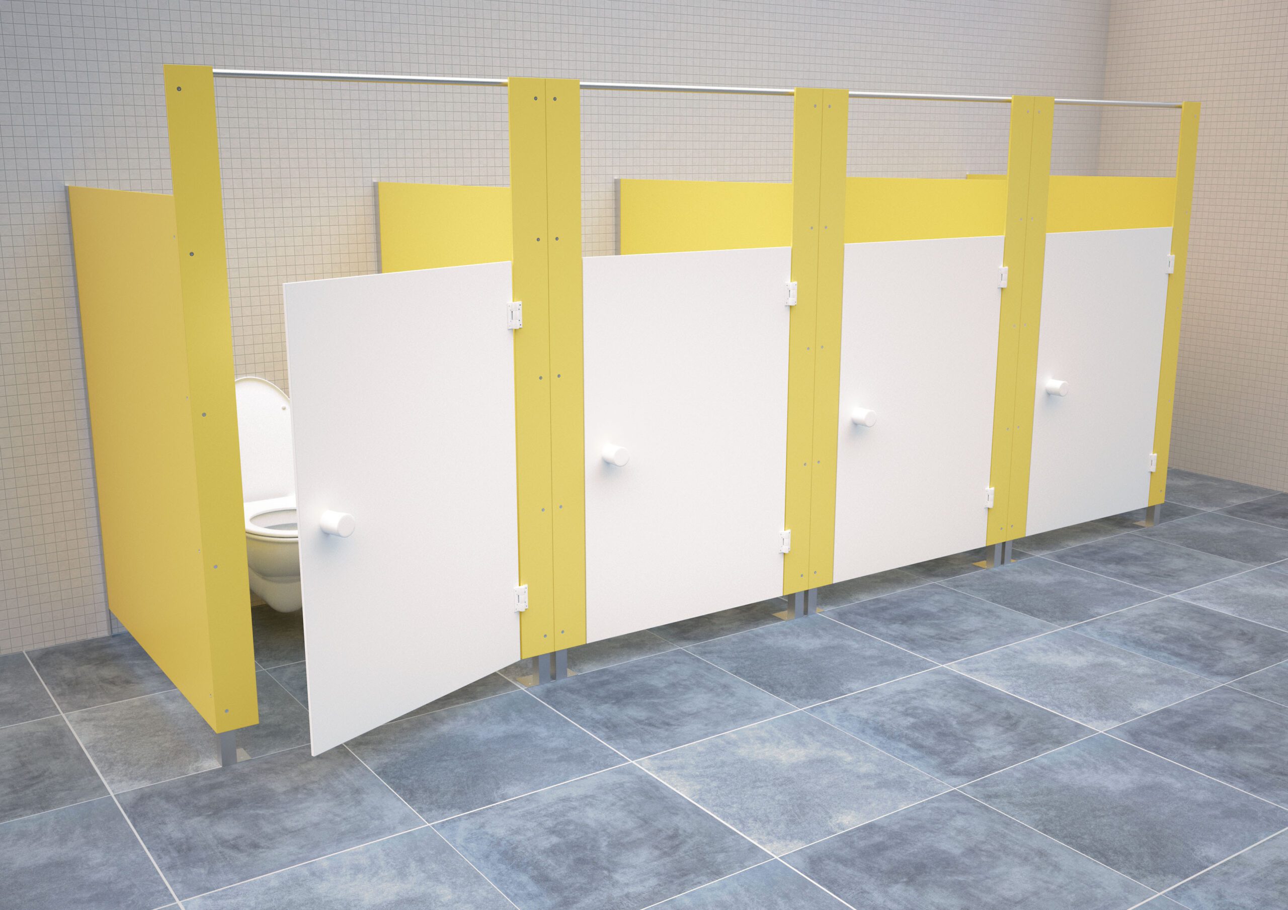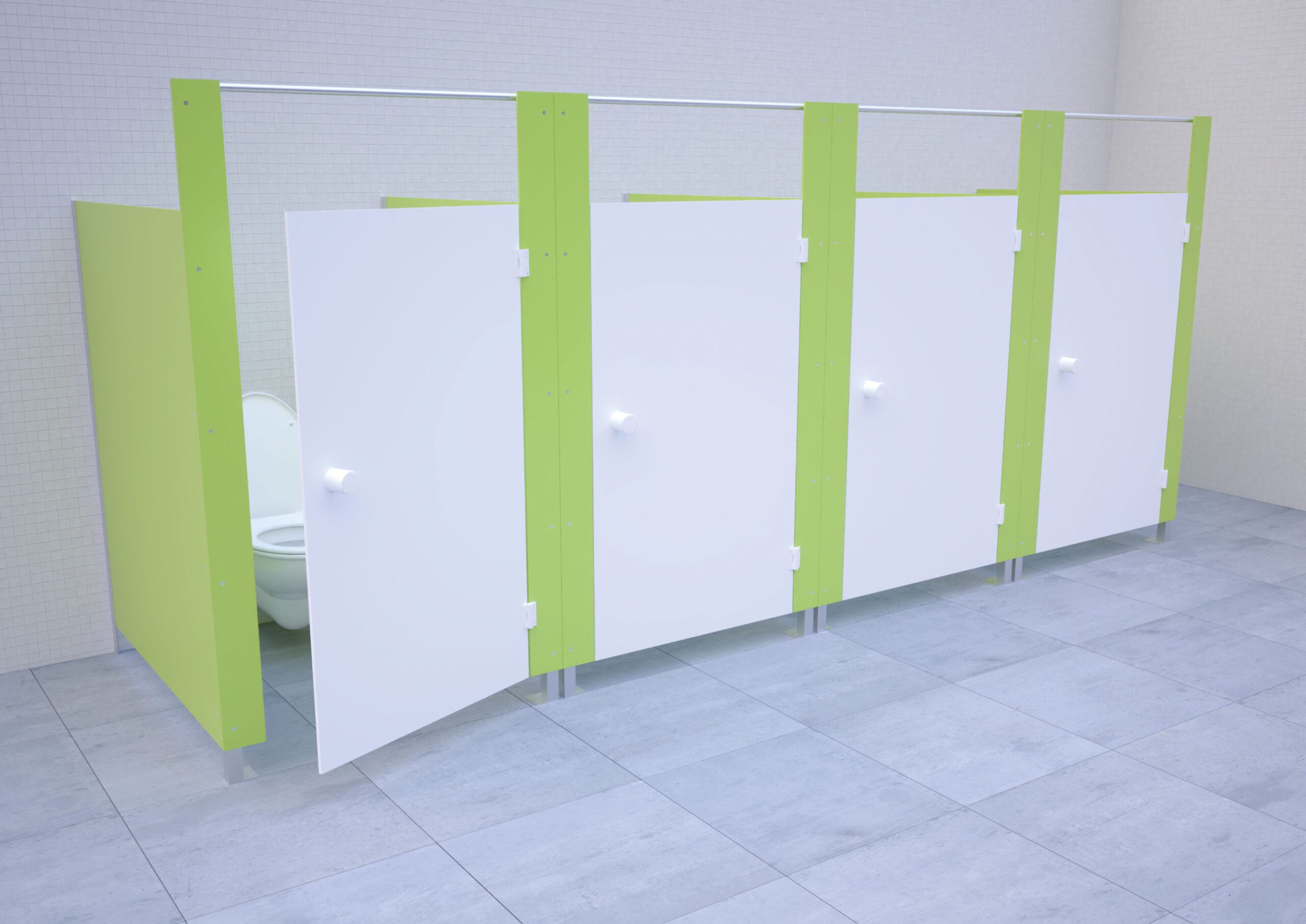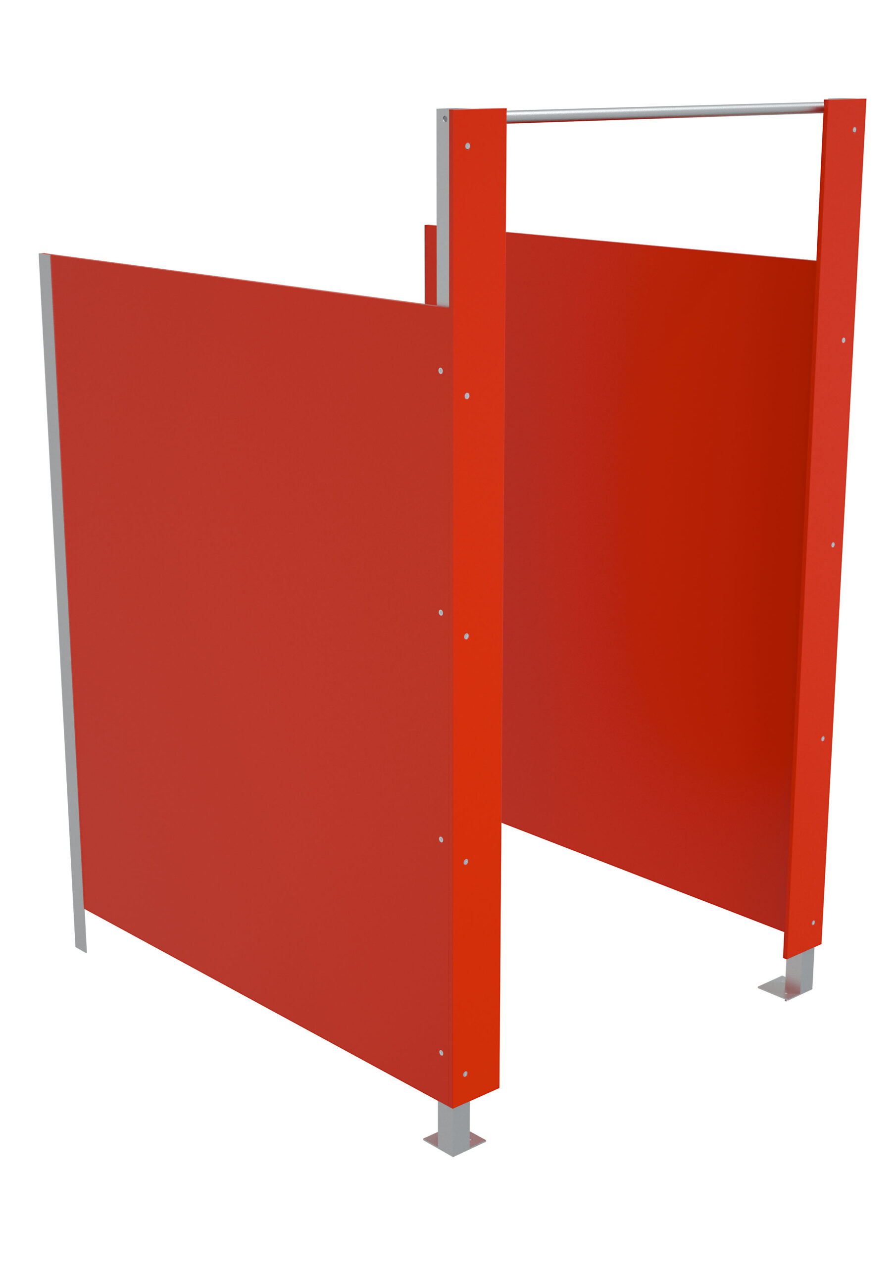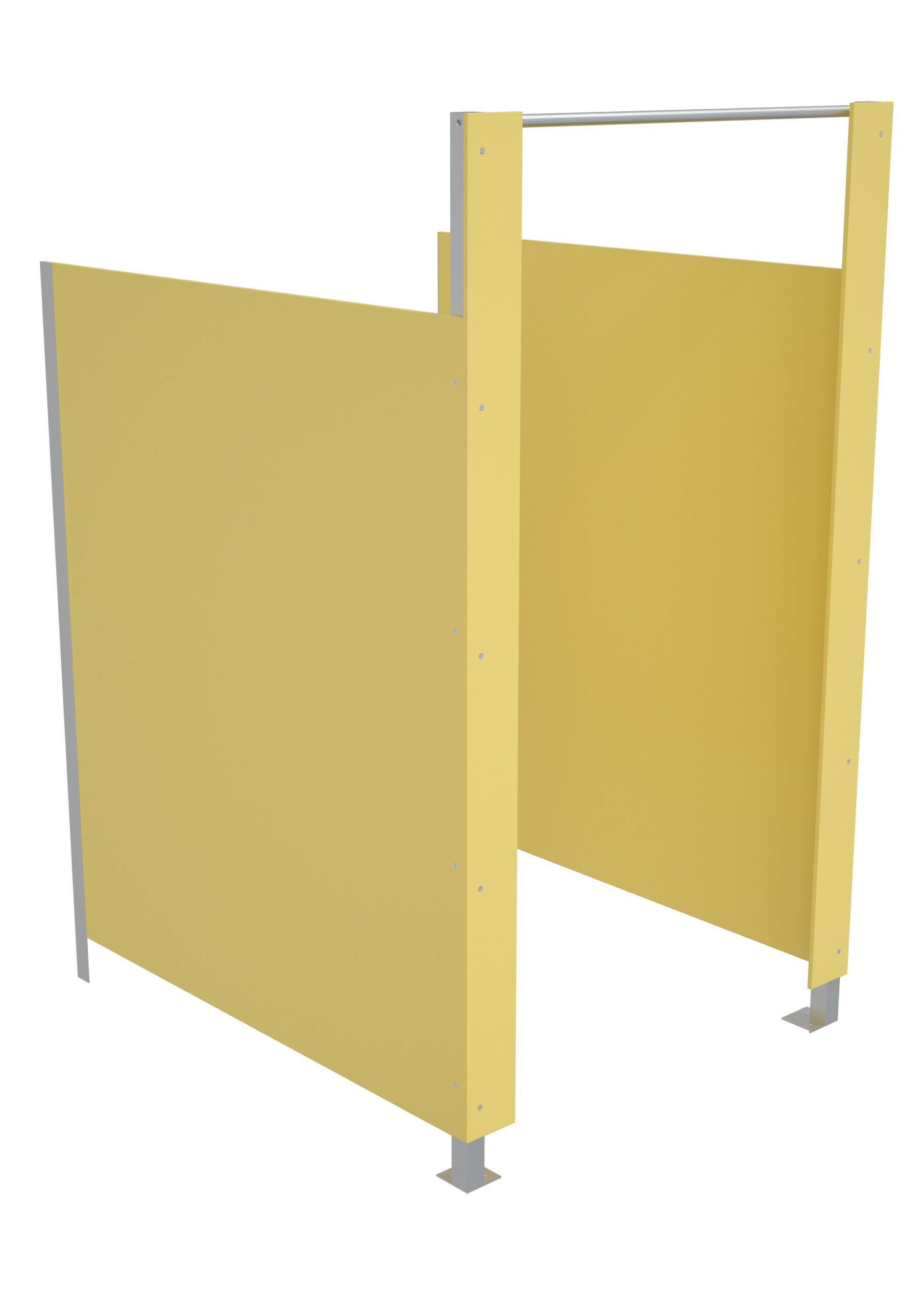 Funkcinė tualeto kabina, kurią galima rinktis iš 5 spalvų, su aliuminiais kampiniais laikikliais ir metaliniu rėmu. Montuojama tiesiai ant grindų.