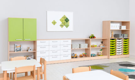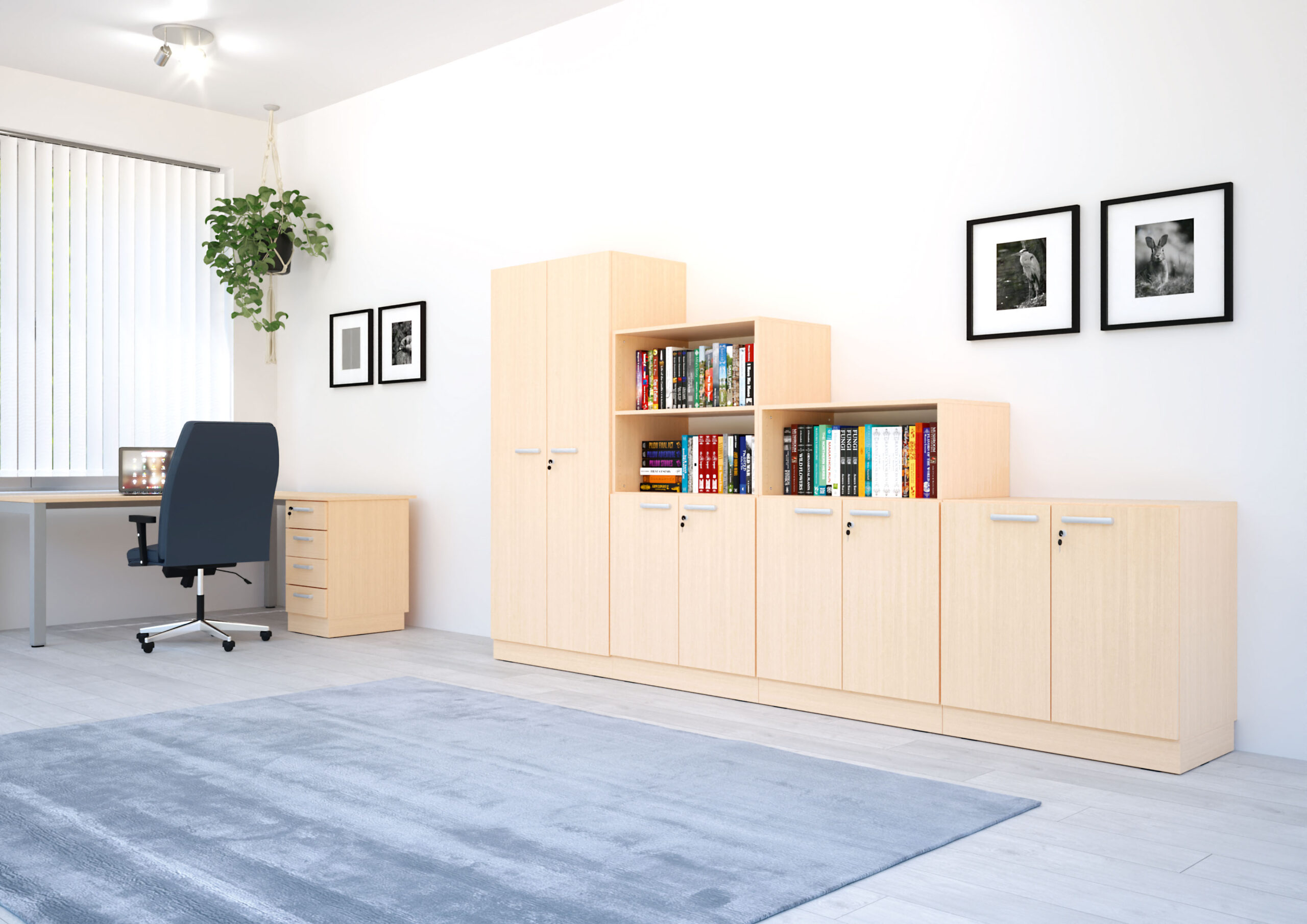 Baldų komplektas Grande iš klevo arba balta laminuota medžio drožlių plokštė, storis 18 mm