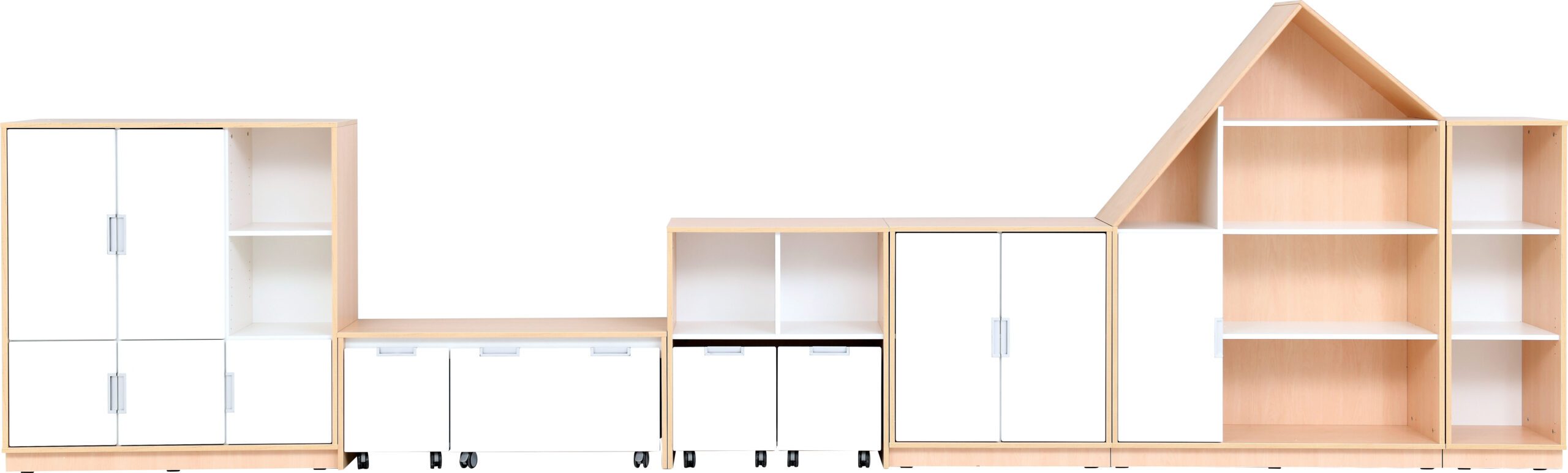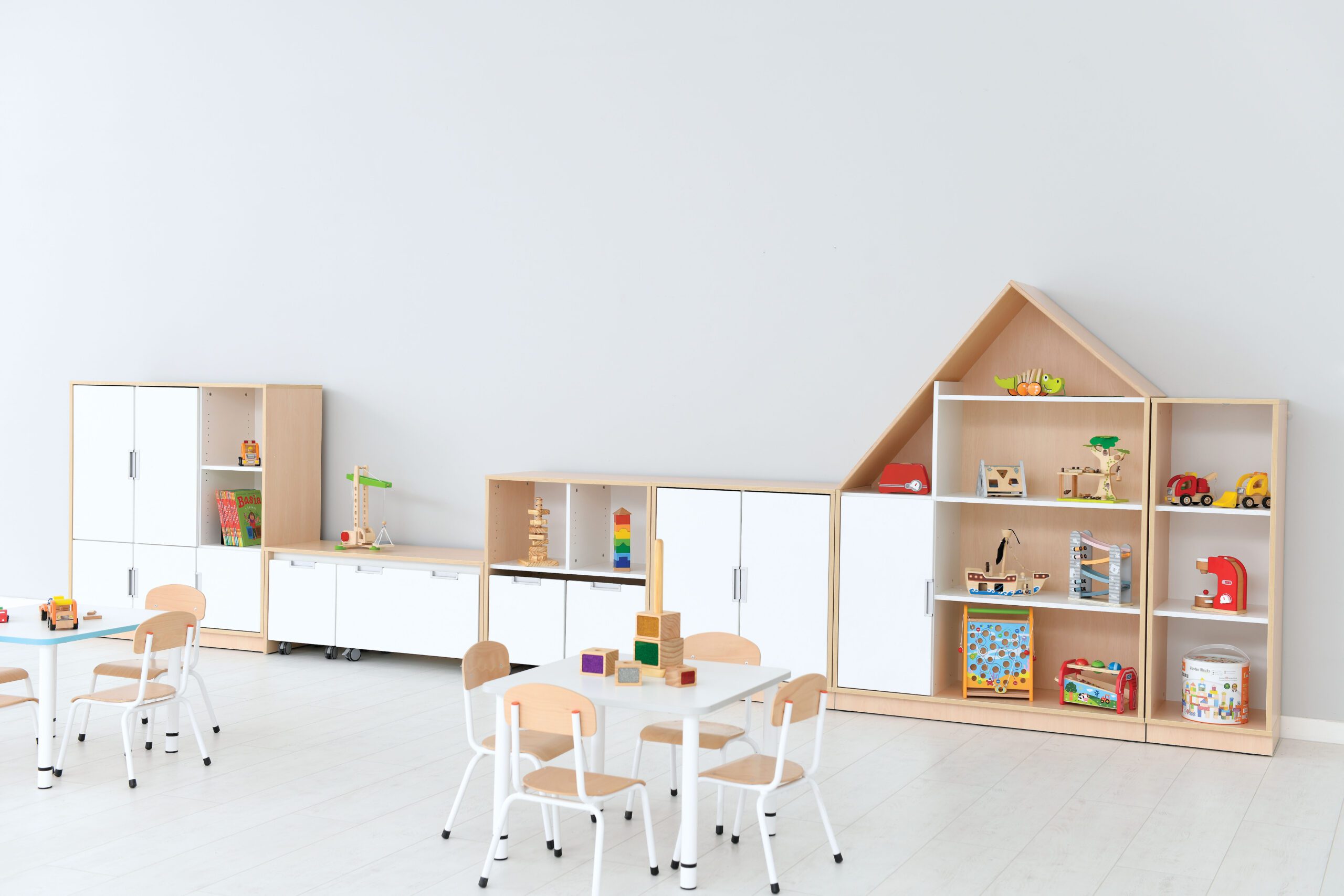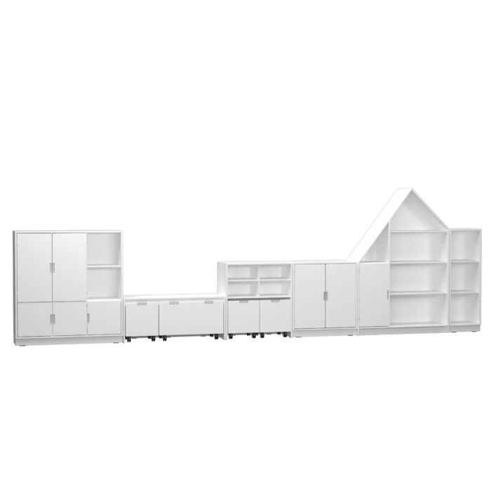 Baldai pagaminti iš 18 mm storio laminuotos klevo arba baltos spalvos plokštės.
