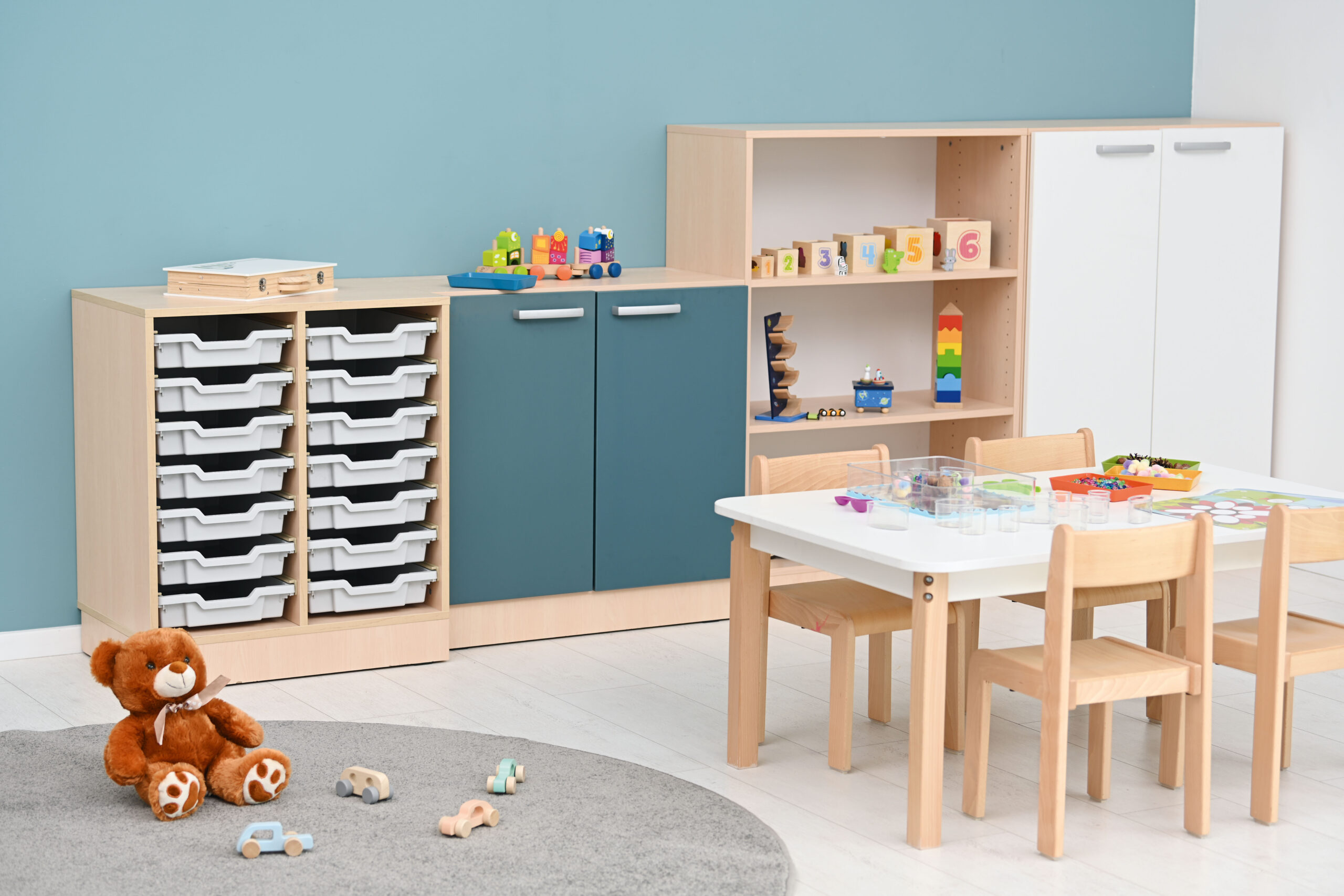 • 18 mm laminuotos medžio drožlių plokštės, šviesaus klevo ir baltos spalvos.