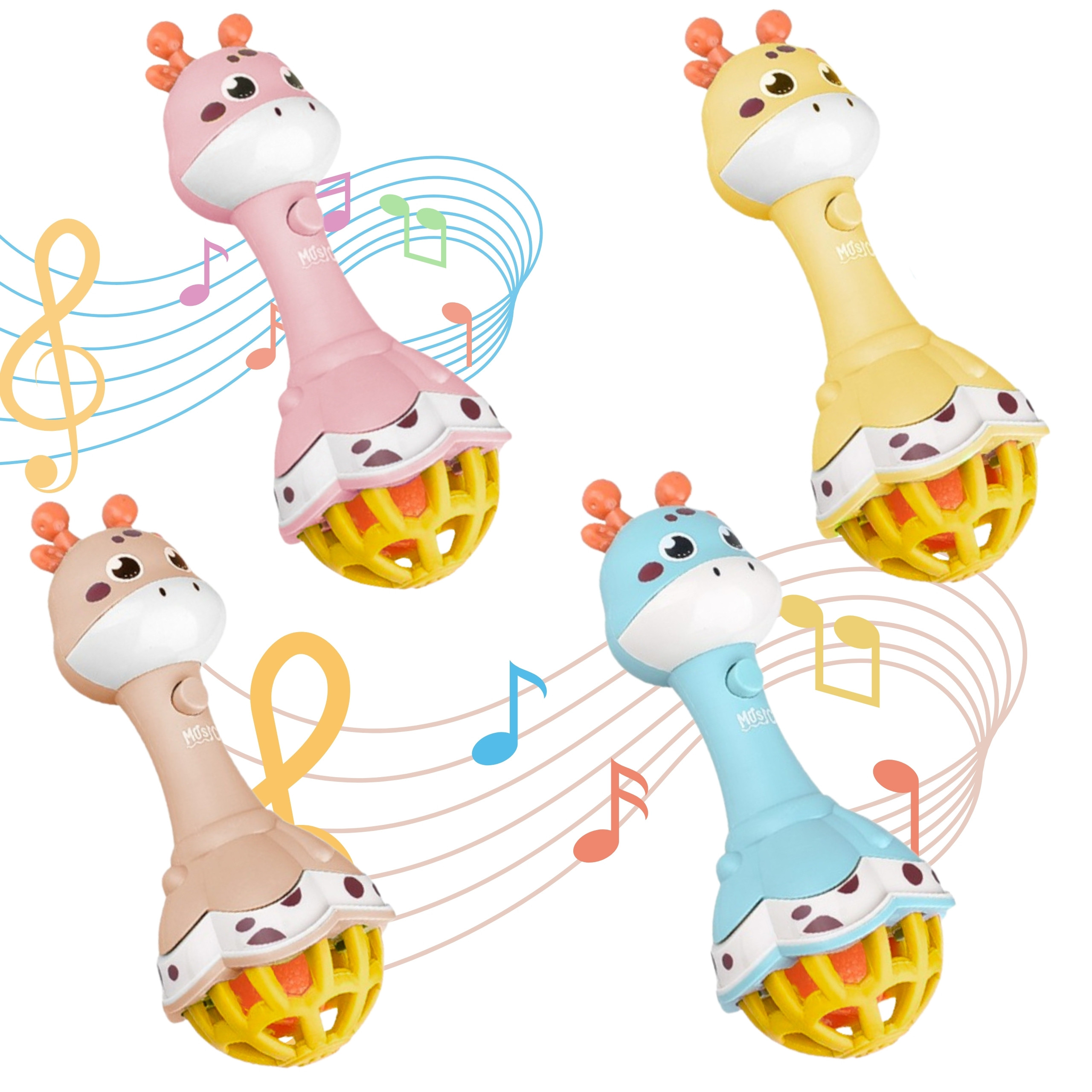 • – barškutis prieinamas keturių spalvų (atsitiktinė atranka),