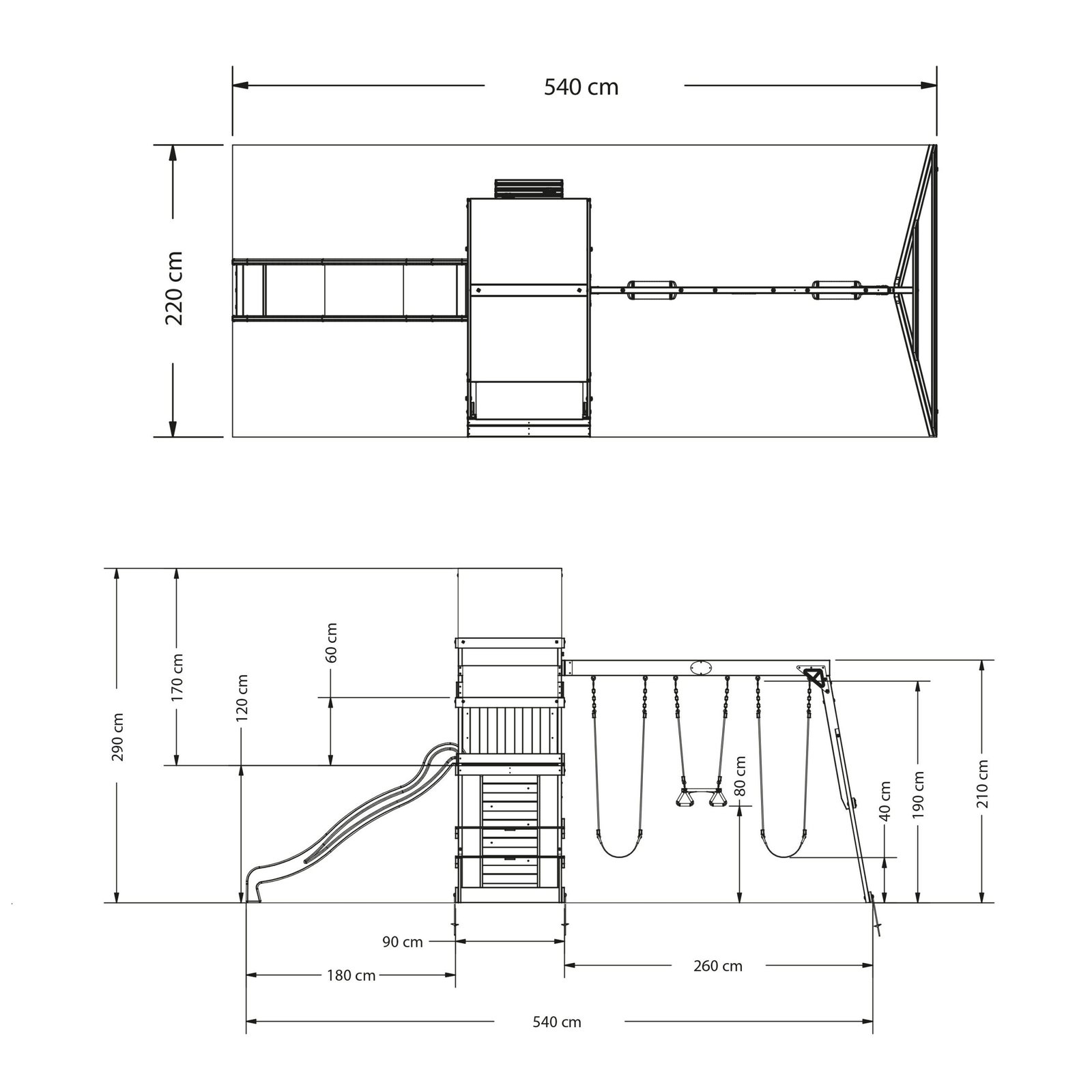 – Lengvas montavimas, palaikomas interaktyvios žingsnis po žingsnio BILT® programėlės – 2 supynės + akrobatinė juosta – dėka jų kiekvienas ras kažką sau, nuo jaunų pradedančiųjų iki pačių sportiškiausių – Smėlio dėžė, tinkanti maždaug 125 kg smėlio (smėlis neįskaičiuotas) – Stalas su suoleliu – 244 cm ilgio čiuožykla – Kopimo siena – įdomesnė nei įprasta kopėčia, ji skatina koordinaciją, raumenų jėgą ir motorinius įgūdžius. Metaliniai rankenai užtikrina saugų ir lengvą įėjimą ir išėjimą iš sujungto viršutinio forto. – Žaidimų bokštas su spalvingu stogu.