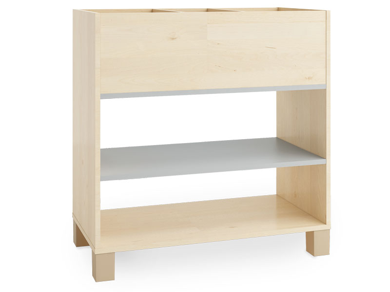 matmenys 92 x 45 x 94 cm. Tipas: laisvai pastatomas. Konstrukcija pagaminta iš 18 mm storio beržo spalvos medžio drožlių plokštės. Baldo komplektas ant kojelių. Konteineryje yra 1 lentyna, pagaminta iš 18 mm storio pilkos spalvos medžio drožlių plokštės. 4 kojos yra smėlio spalvos, 7 x 10 mm dydžio.
