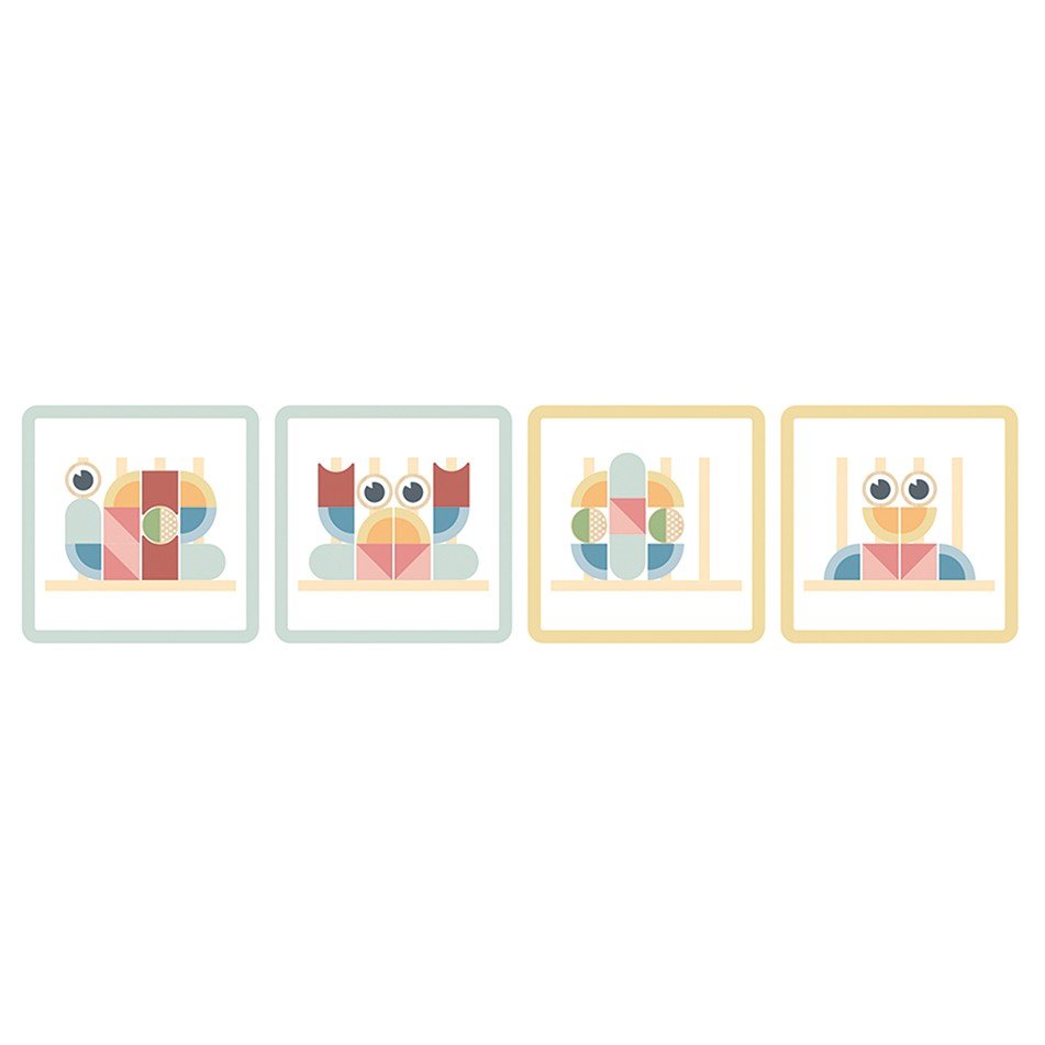 - – rinkinys sudaro 18 elementų: medinė bokštelių bazė, 12 blokų ir 5 dvišalės kortelės su raštais
