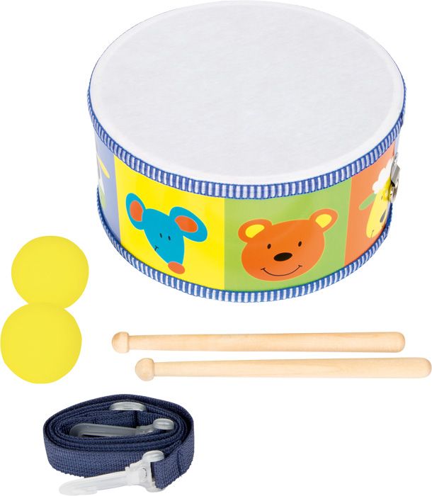 Tvirtas vaikiškas būgnas su tvirtomis medinėmis lazdelėmis. Dekoruotas linksmais, vaikams draugiškais gyvūnų motyvais. Žaismingai lavina ritmo ir ritmo pojūtį bei rankų ir akių koordinaciją.