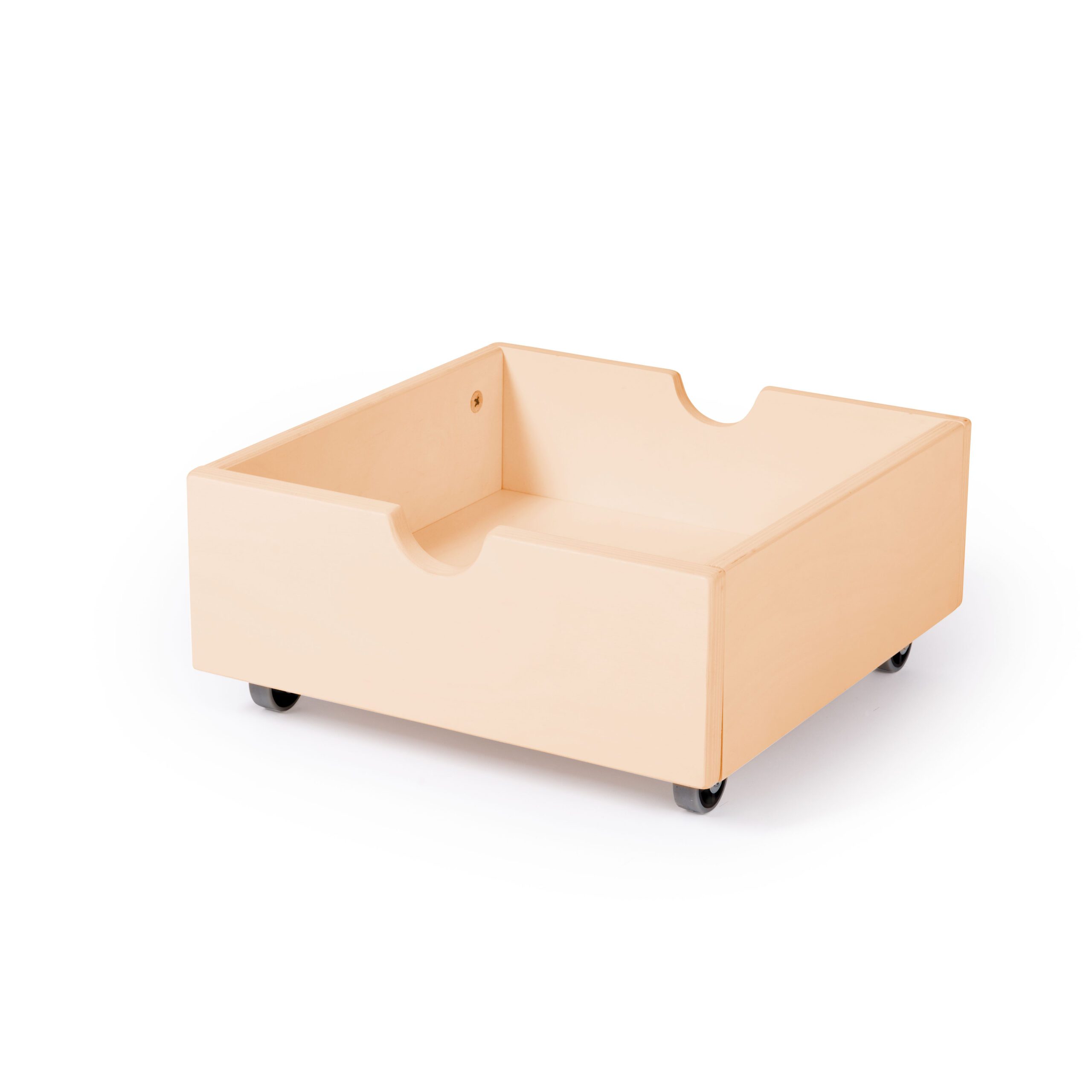 Žema daiktadėžė su patraukliu dizainu. Tiksliai apdirbtas, su ratukais, kurie leidžia lengvai įstumti ir ištraukti konteinerį bei judėti tik į priekį ir atgal.