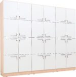 8 skyrių studentų spintelė – klevo ir balta, matmenys: 82 x 49,8 x 223 cm, 3 vnt.