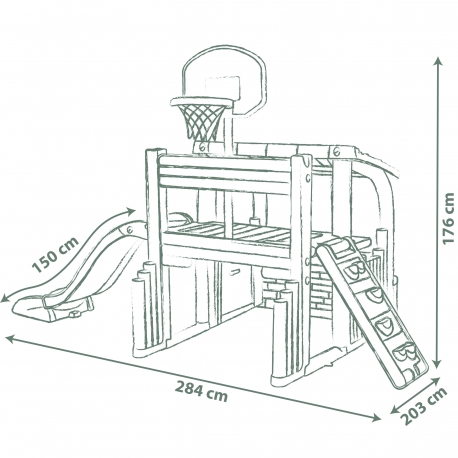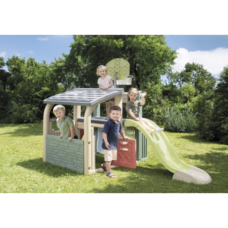 Daugiafunkcinė lauko žaidimų aikštelė vaikams nuo 2 metų. Puikiai derina sportą, kūrybinius žaidimus ir poilsį.