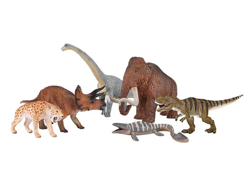 Didelės priešistorinių gyvūnų figūros, skirtos teminiams žaidimams. Dėl naudojamų spalvų ir dėmesio detalėms modeliai atrodo tarsi gyvi. Figūrėlės pagamintos iš patvaraus plastiko. Į komplektą įeina: brachiozauras (matmenys: 21 x 5 x 13,5 cm), mamutas (matmenys: 20 x 10 x 13 cm), T-reksas (matmenys: 18 x 4 x 8,5 cm), trikeratopsas (matmenys: 16,8 x 5,5 x 7 cm), tilozauras (matmenys: 17 x 12 x 5 cm), smilodonas (matmenys: 12,8 x 3,8 x 7,6 cm).
