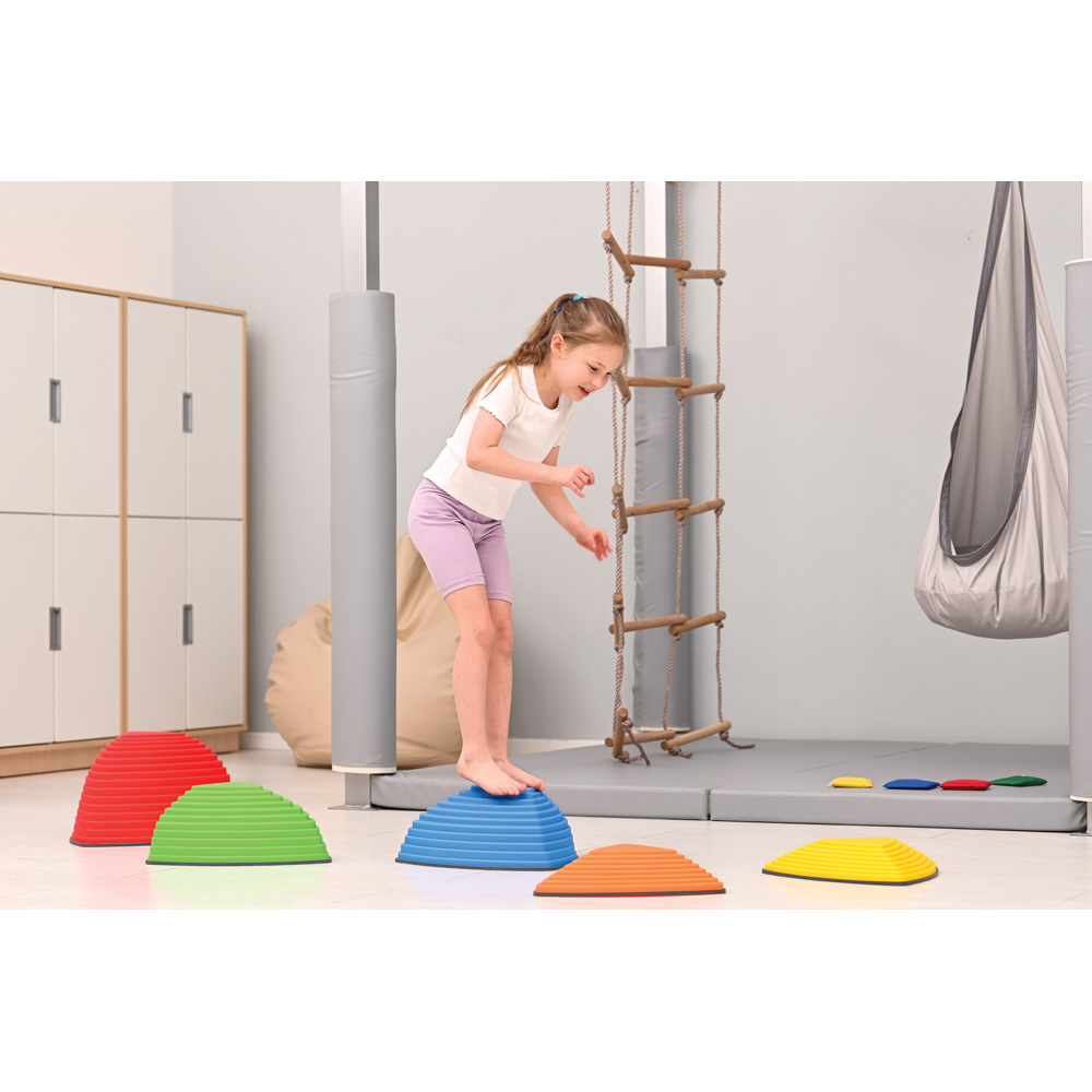 Plastikiniai laipteliai įvairių spalvų ir dydžių, imituojantys tikrus akmenis. Žaidėjo užduotis – šokinėti nuo akmens ant akmens, išlaikant pusiausvyrą. Žaidimas lavina motorinę koordinaciją, pusiausvyrą ir lankstumą. Elementai yra pritvirtinti iš apačios guminėmis pagalvėlėmis, kad žaidimo metu nesislinkstų .