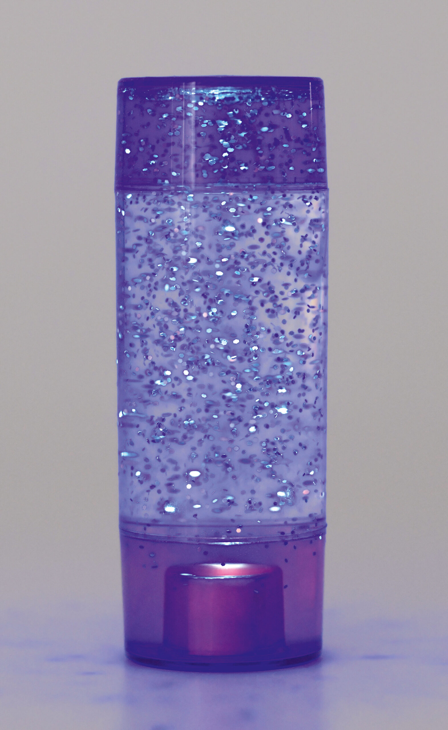 lavos laikrodis su blizgučiais, kuris sukasi, kai jį judinate. Dugne įtaisyta lemputė, kuri šviečia nuolat (be jungiklio). Baterijų pakeisti negalima.