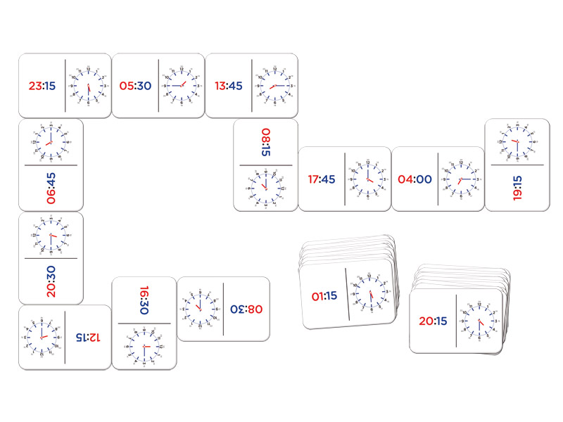 Kiekvienoje kortelėje, kairėje pusėje, laikas skaitmenine forma, dešinėje pusėje – klasikinio valandų ciferblato išdėstymas. Skaičiai ir rodyklės, rodantys valandas, raudoni, ketvirčiai – mėlyni. Rodo laiką iki ir po vidurdienio.