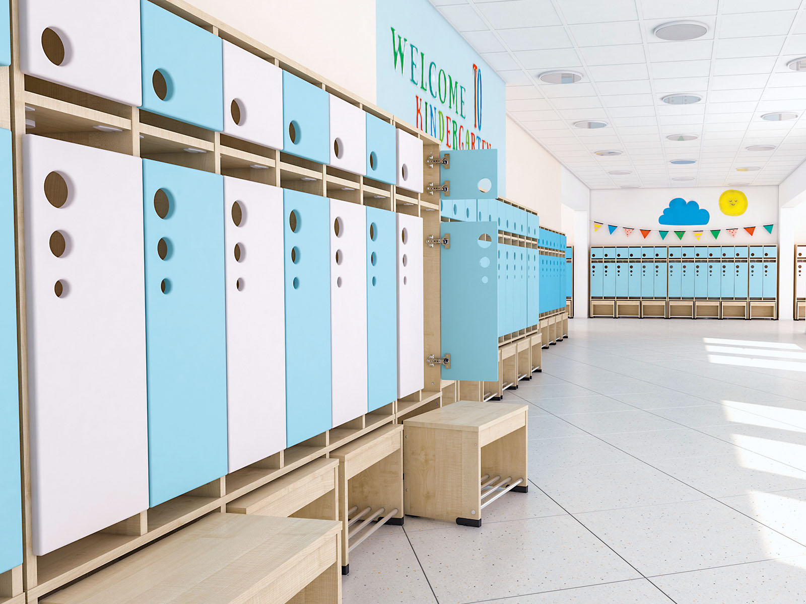 Drabužinė su ištraukiama sėdyne „Drop” – skirtingų aukščių