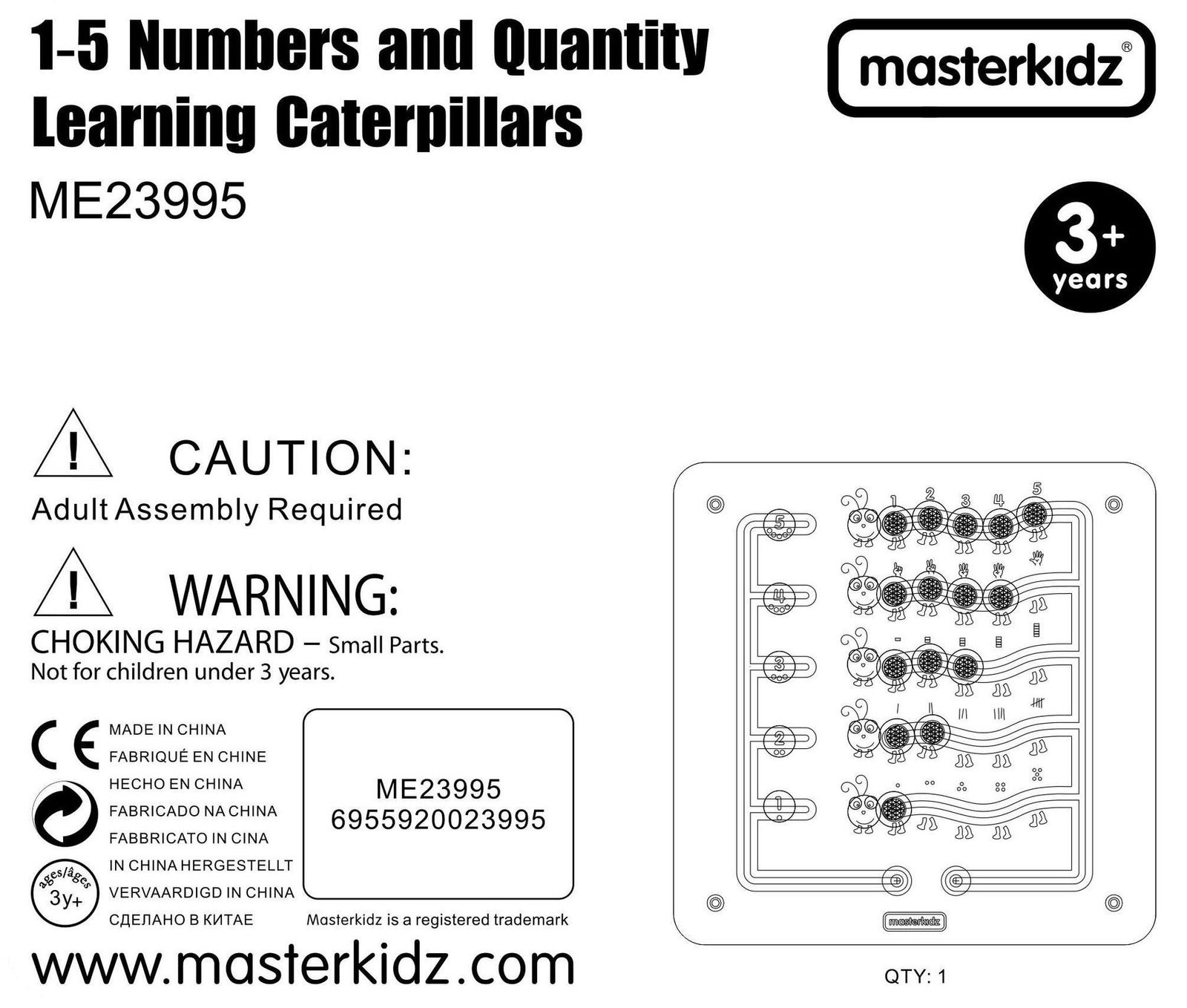 Edukacinė sieninė lenta Spalvingi vikšrai, mokantys skaičius ir kiekius ME23995