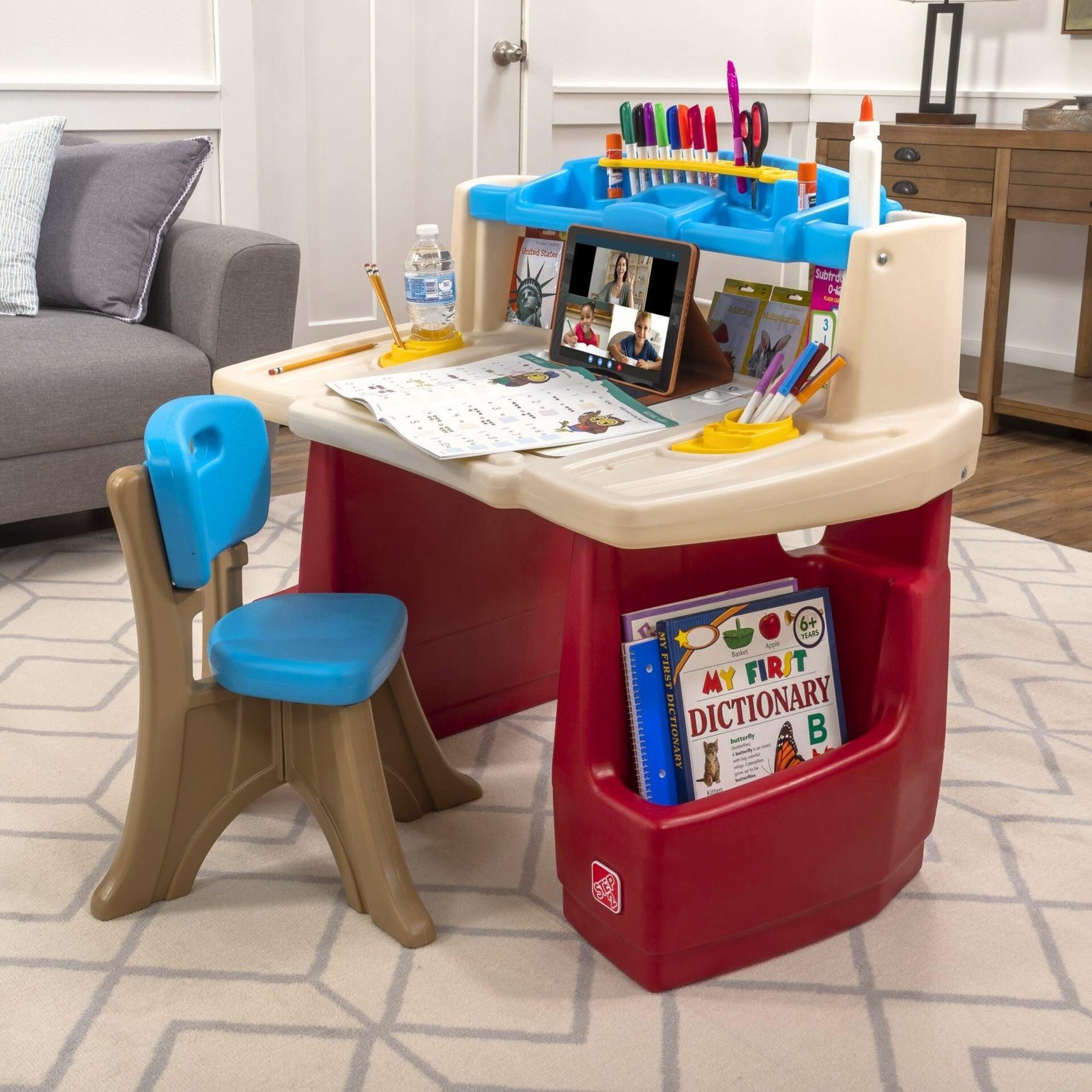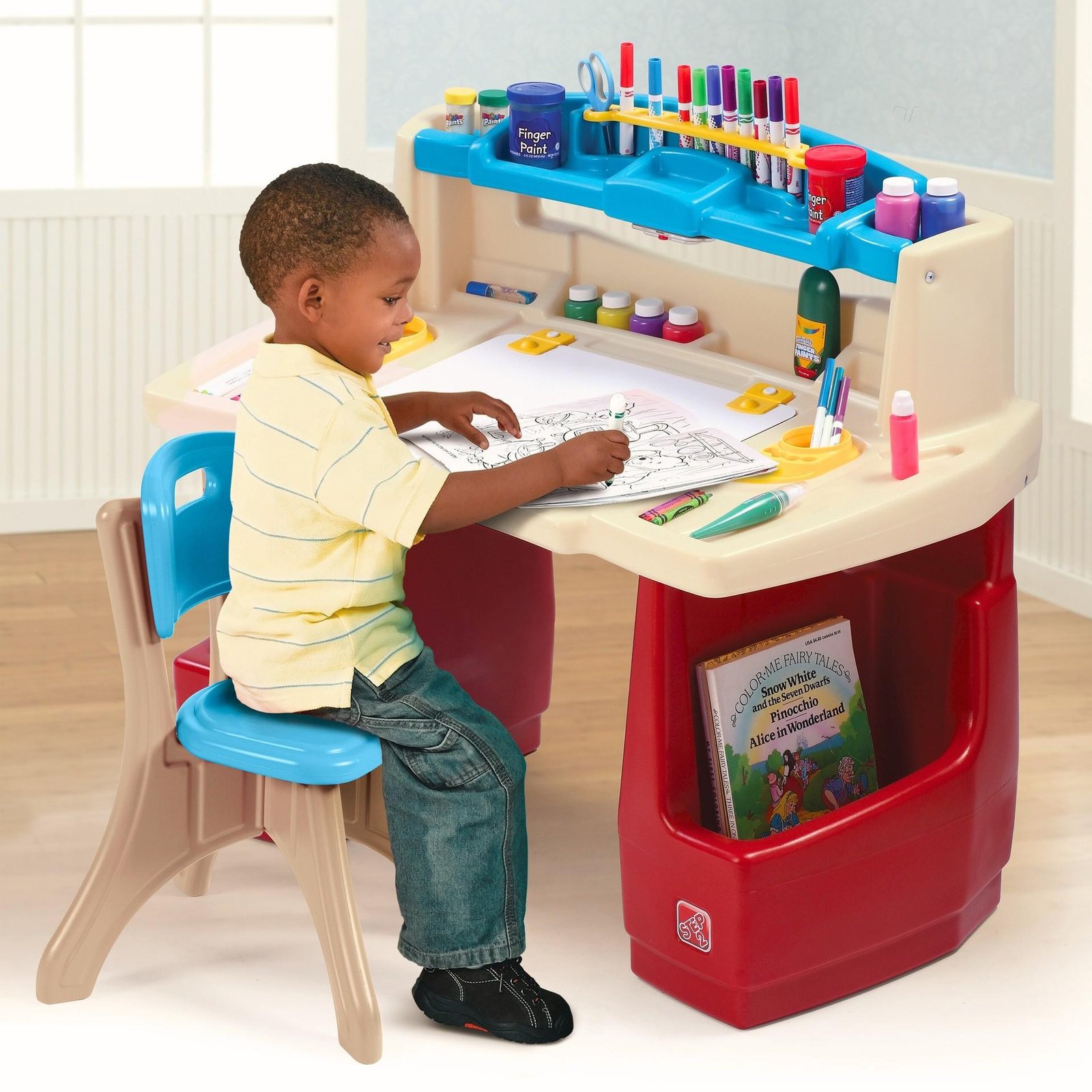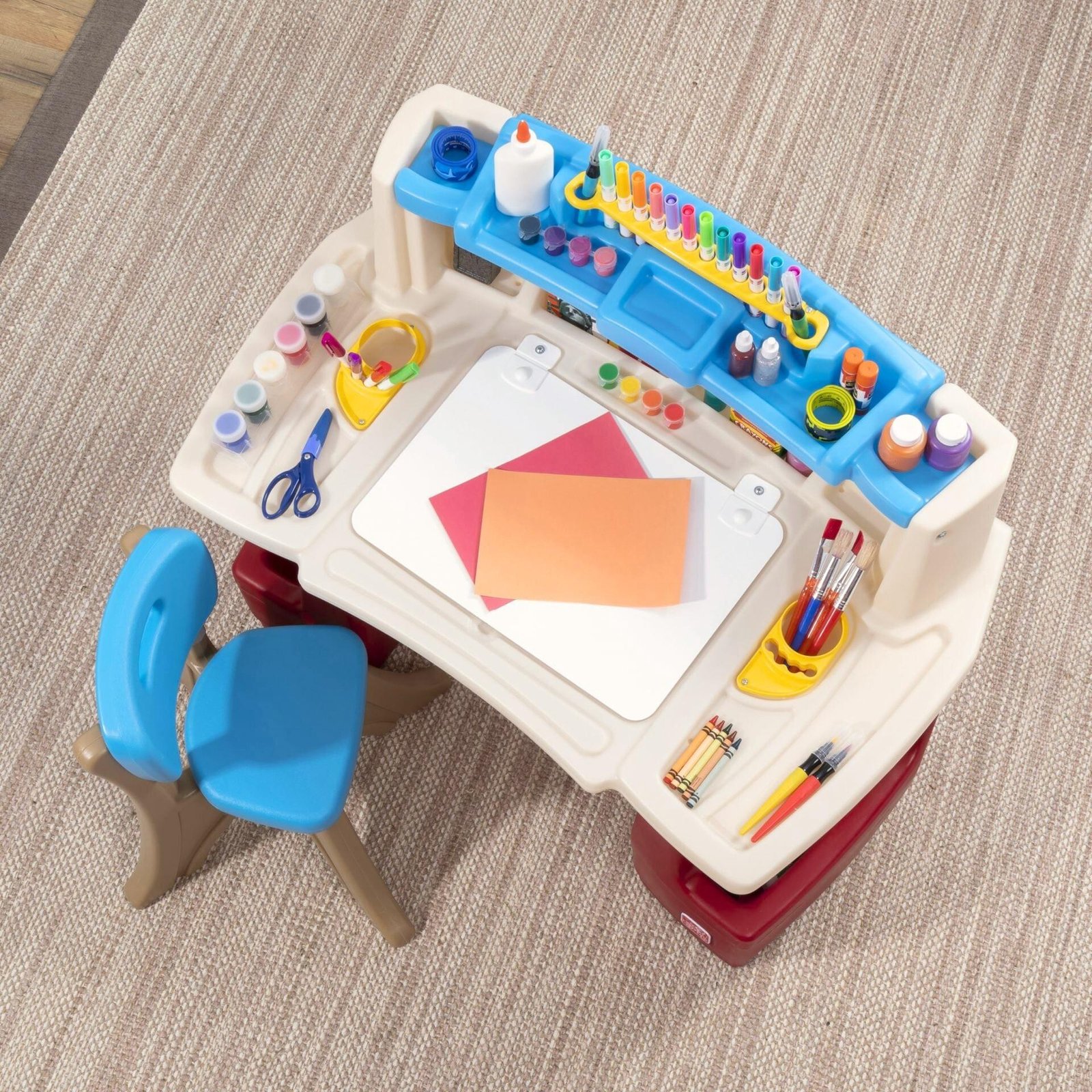 Deluxe Meno Meistro Stalas iš Step2 yra puiki vieta kūrybiniam žaidimui ir mokymuisi! Šis spalvingas, funkcionalus stalo ir kėdės komplektas paskatins jūsų vaiko vaizduotę ir padės ugdyti rankinius įgūdžius. Puikus pasirinkimas vaiko kambariui arba žaidimų erdvei.