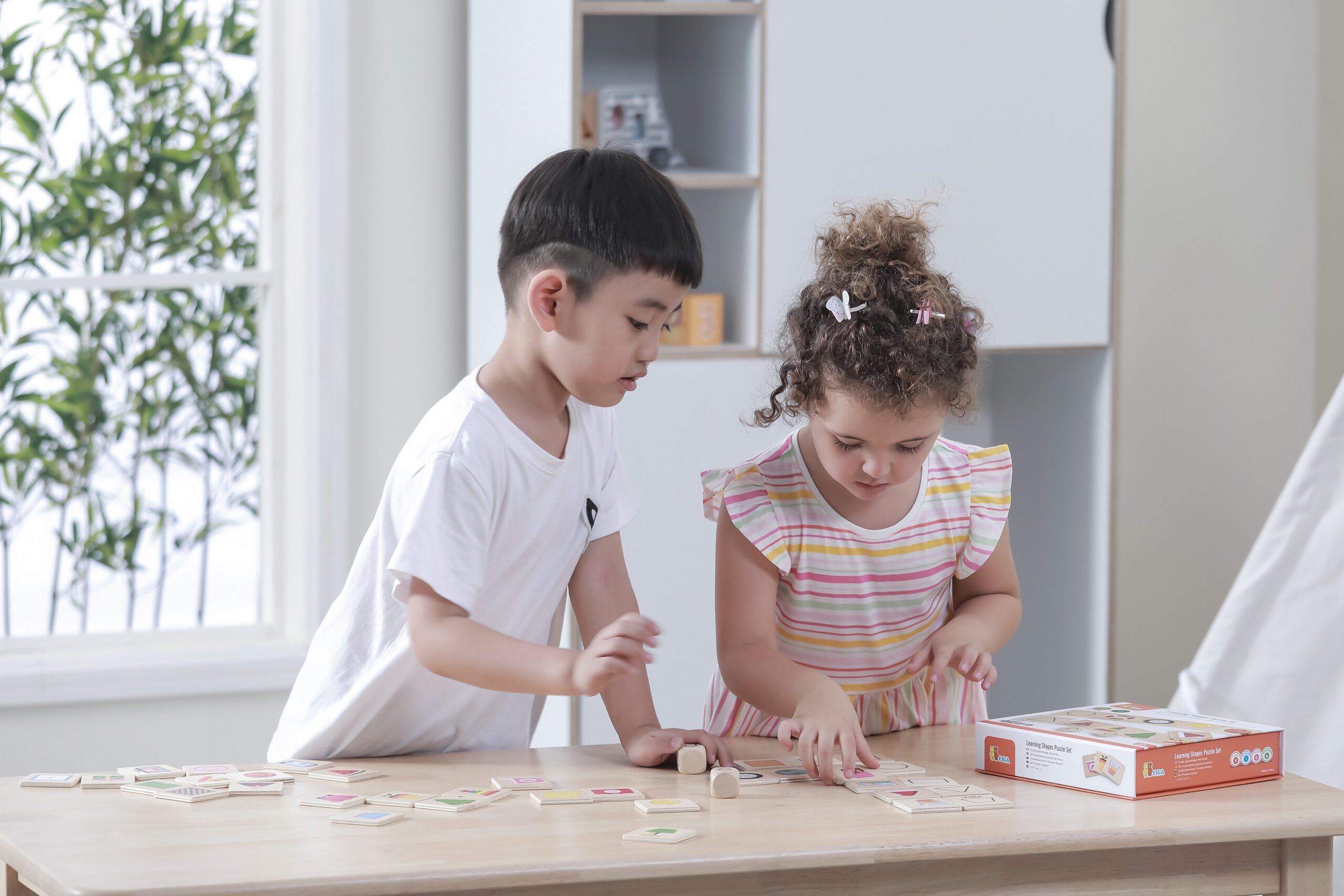 Medinė dėlionė mokymuisi ir formų rūšiavimui. Vaiko užduotis yra pritaikyti objektus prie pasirinktos formos. Vaizdai vaizduoja daug kasdienių daiktų, tokių kaip gėlių vazonas ir pica. Žiūrėdamas į gėlių vazoną, vaikas pamatys trapezoido formą, o picos gabalas bus trikampis. Visa dėlionė pagaminta iš medžio ir nudažyta netoksiškais dažais. Pridedamos instrukcijos siūlo variacijas vienam ar daugiau žaidėjų, ir skirtingais sunkumo lygiais