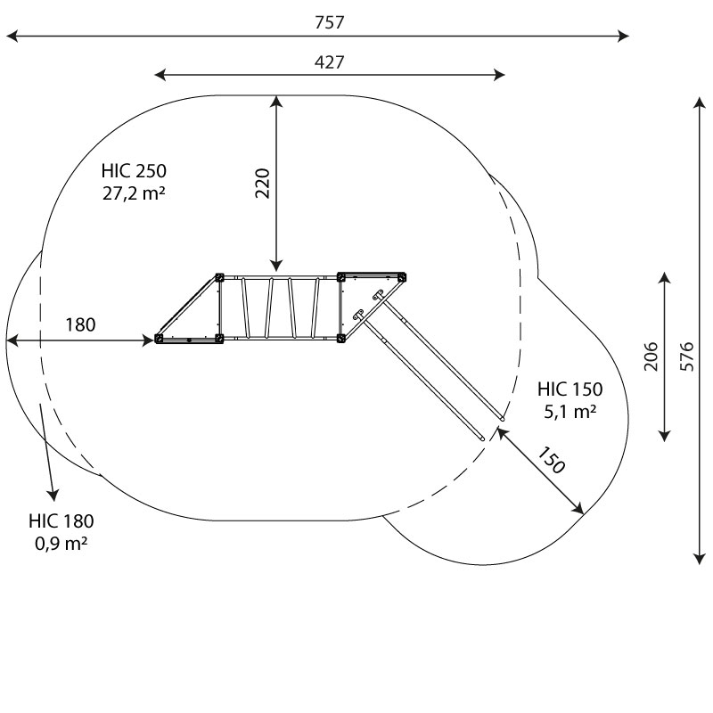 Laisvo kritimo aukštis 250 cm