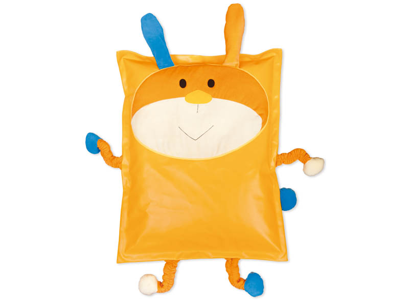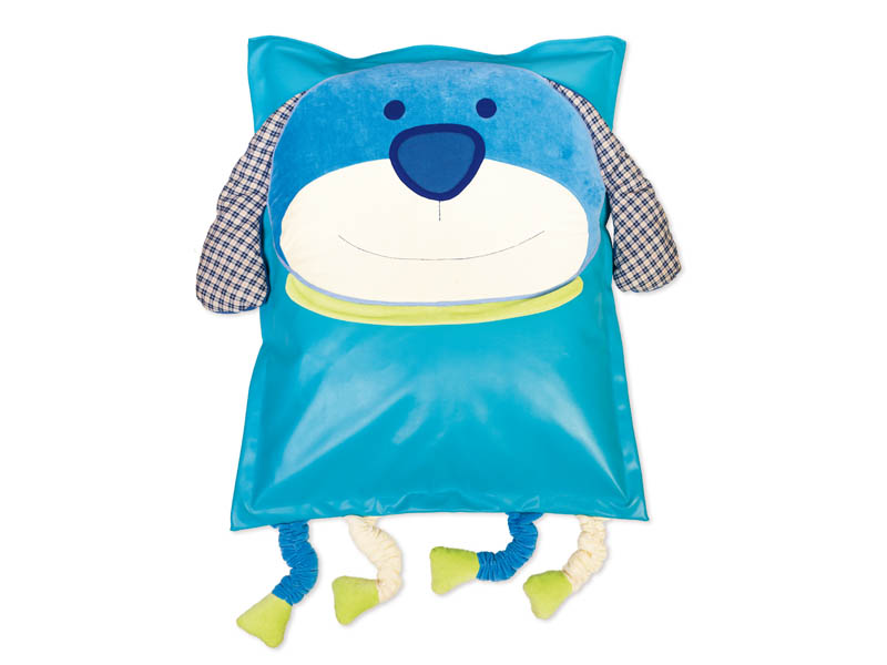 Matmenys: 75 x 95 cm; užvalkalas: dilimui atsparus PVC audinys be ftalatų; papildomos medžiagos: veliūras, vilna, veltinis, antklodžių vata, guma; užpildas: putų granulės