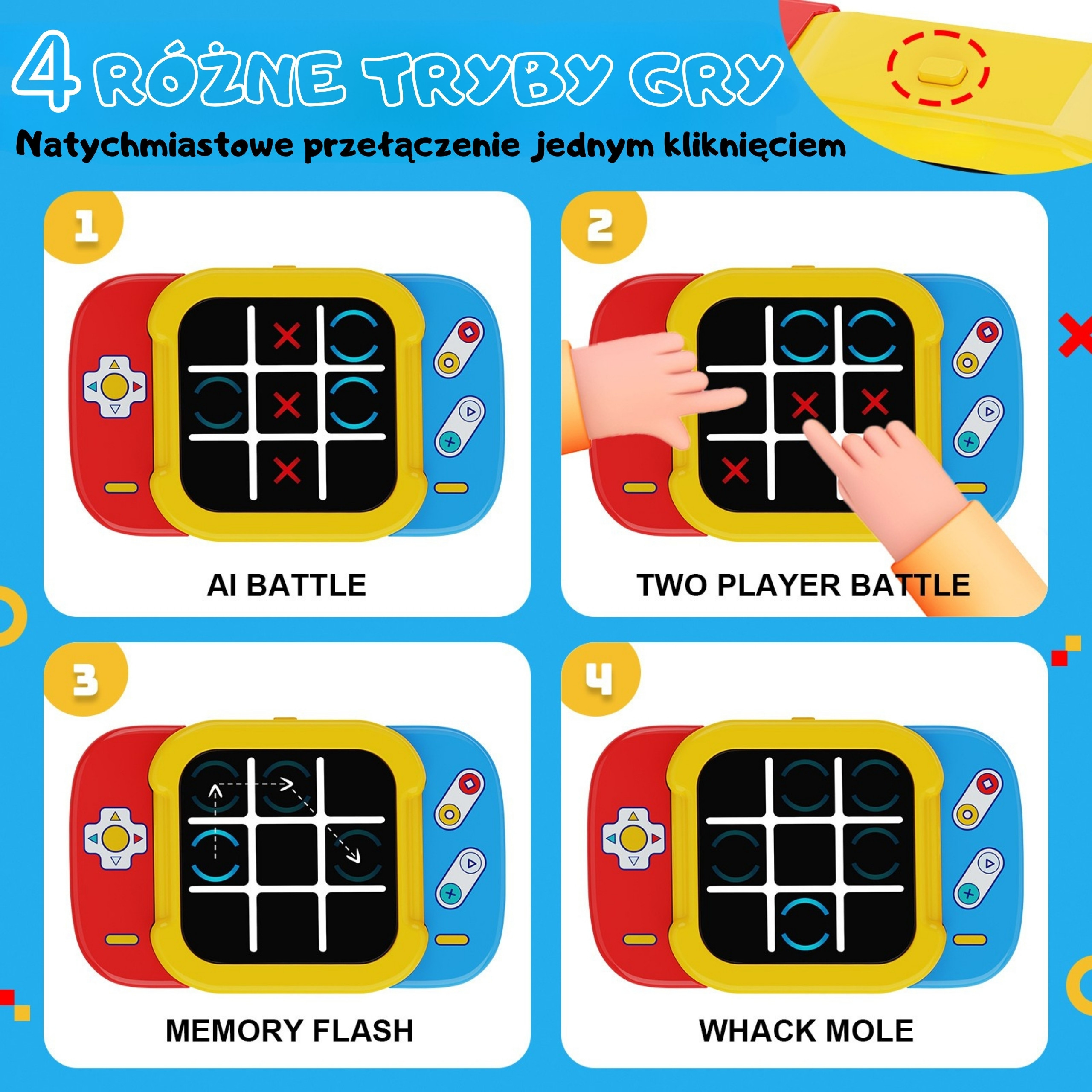This modern electronic Tic- Tac-Toe game combines classic fun with cutting-edge technology, offering endless hours of educational entertainment for the whole family. Its colorful design with a touchscreen makes every game incredibly engaging, while additional game modes provide a variety of solo or cooperative play options.