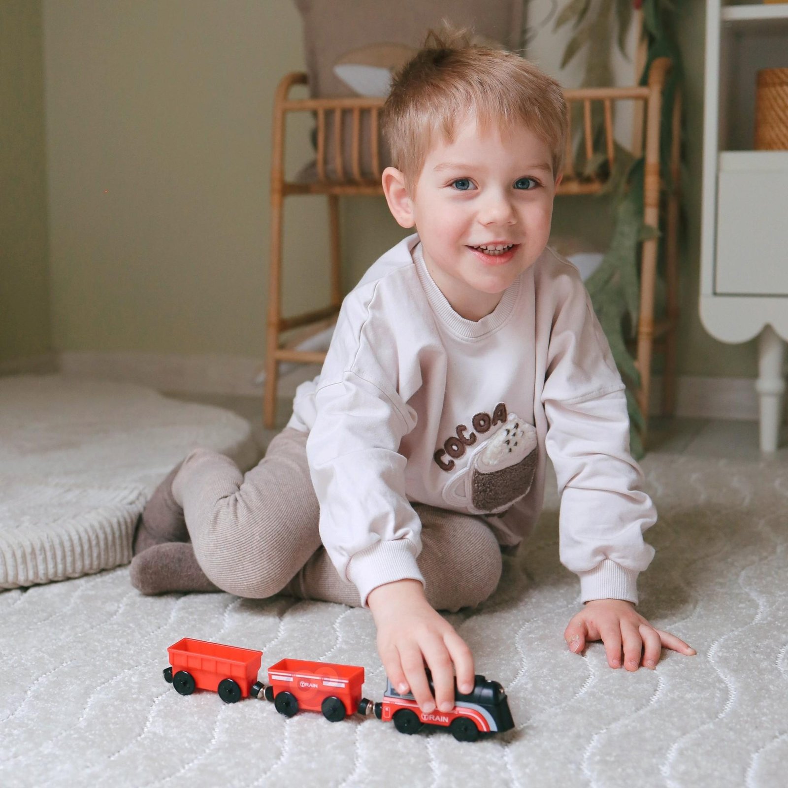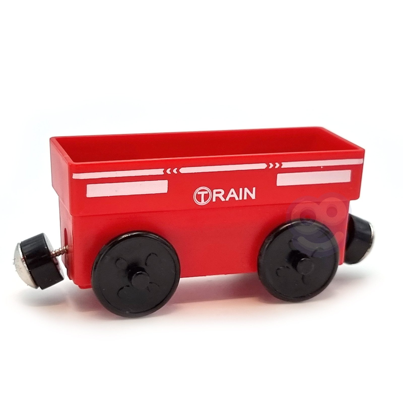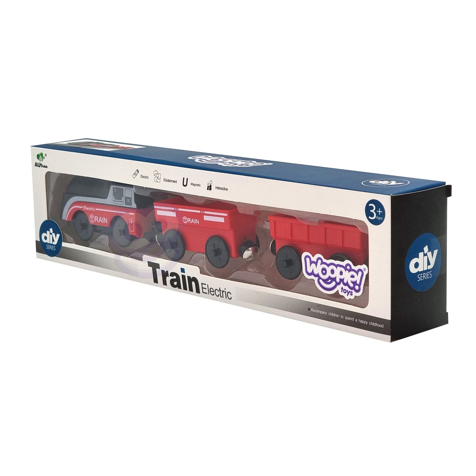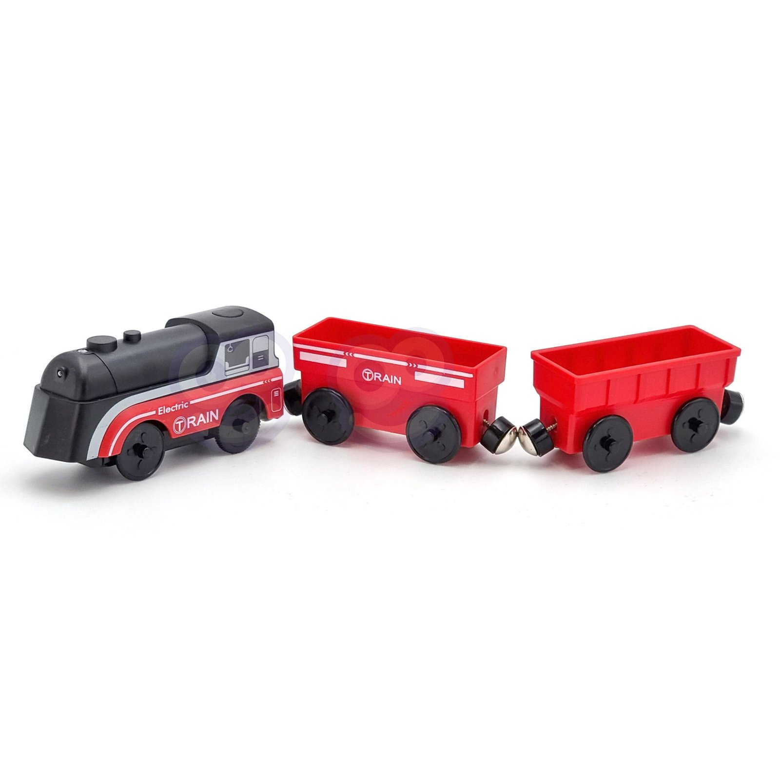 Baterijomis maitinamas traukinys su šviesa, magnetiniais vagonais ir suderinamumu su dauguma medinių trasų suteikia valandų kūrybinio žaidimo. Lengvai surenkamas, be aštrių kraštų. Lavina motoriką, vaizduotę ir kūrybiškumą.
