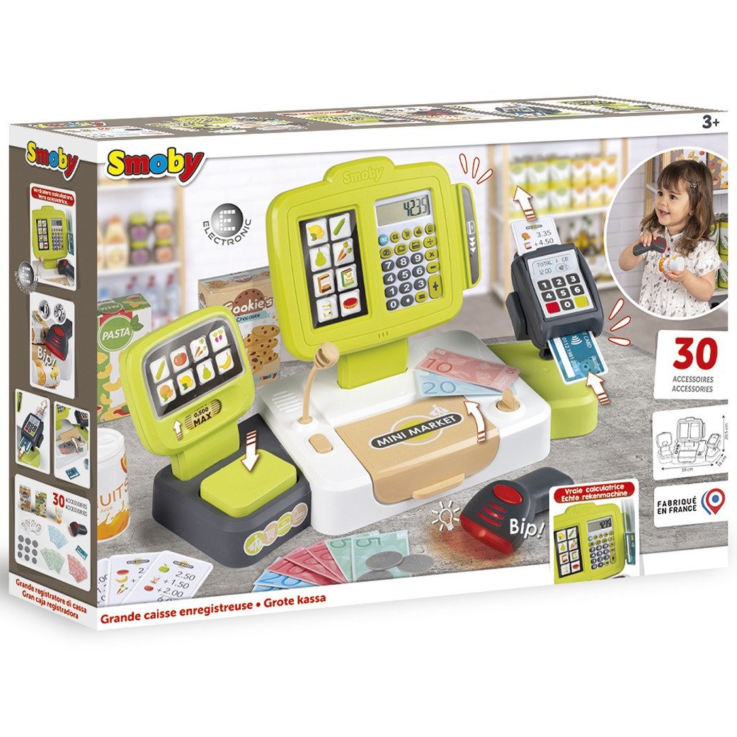 - – komplekte yra kasos aparatas, produktai (makaronai, sausainiai), pinigai, kvitai, mokėjimo kortelė,