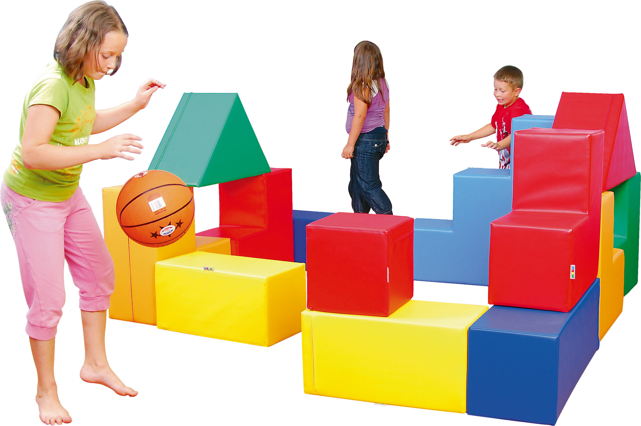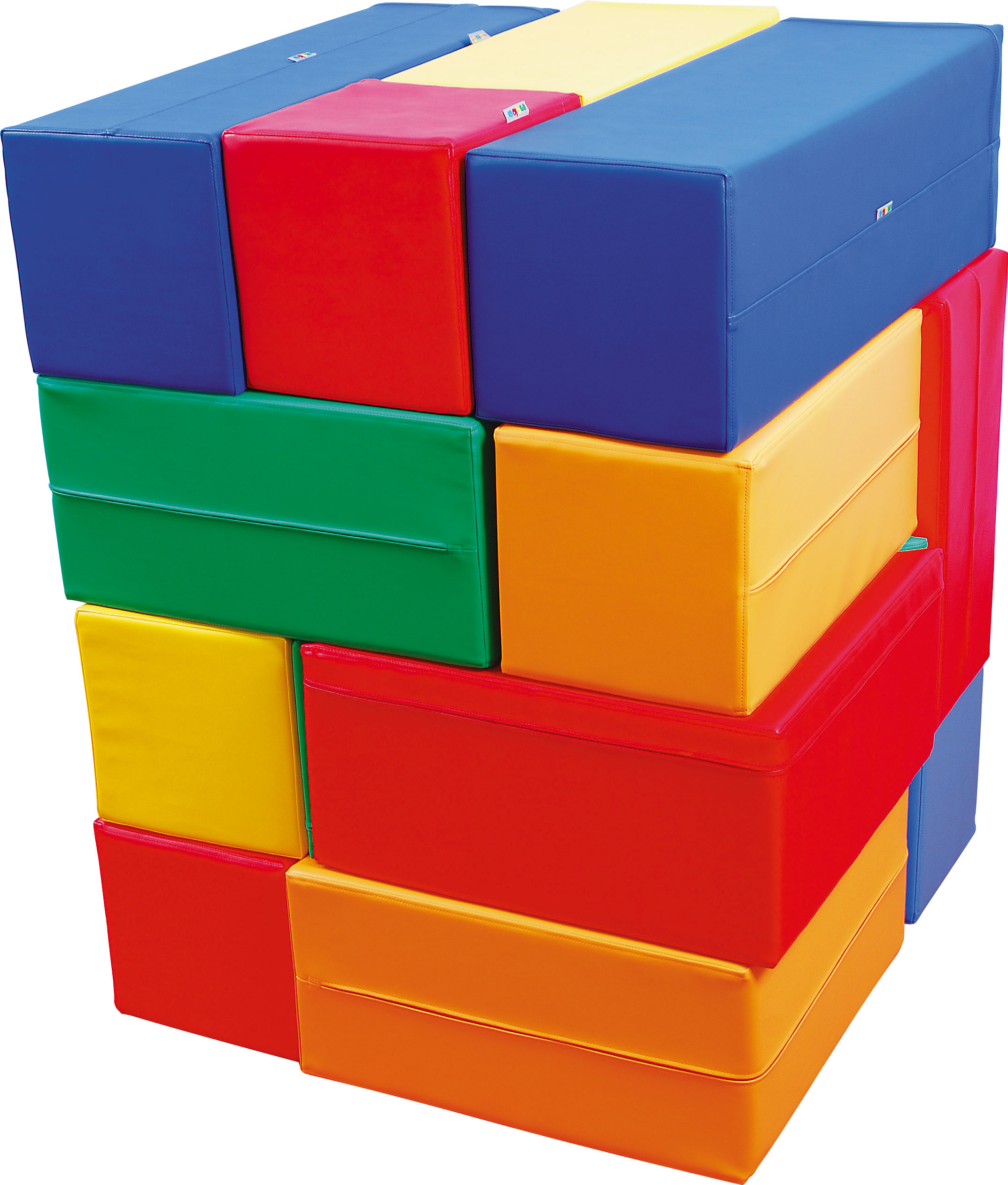 Spalvingų minkštų elementų rinkinys (13 vnt.) – įvairių formų detalės, padengtos patvaria PVC medžiaga be ftalatų. Skatina vaikus žaisti grupėje, kurti konstrukcijas ir aktyviai judėti.