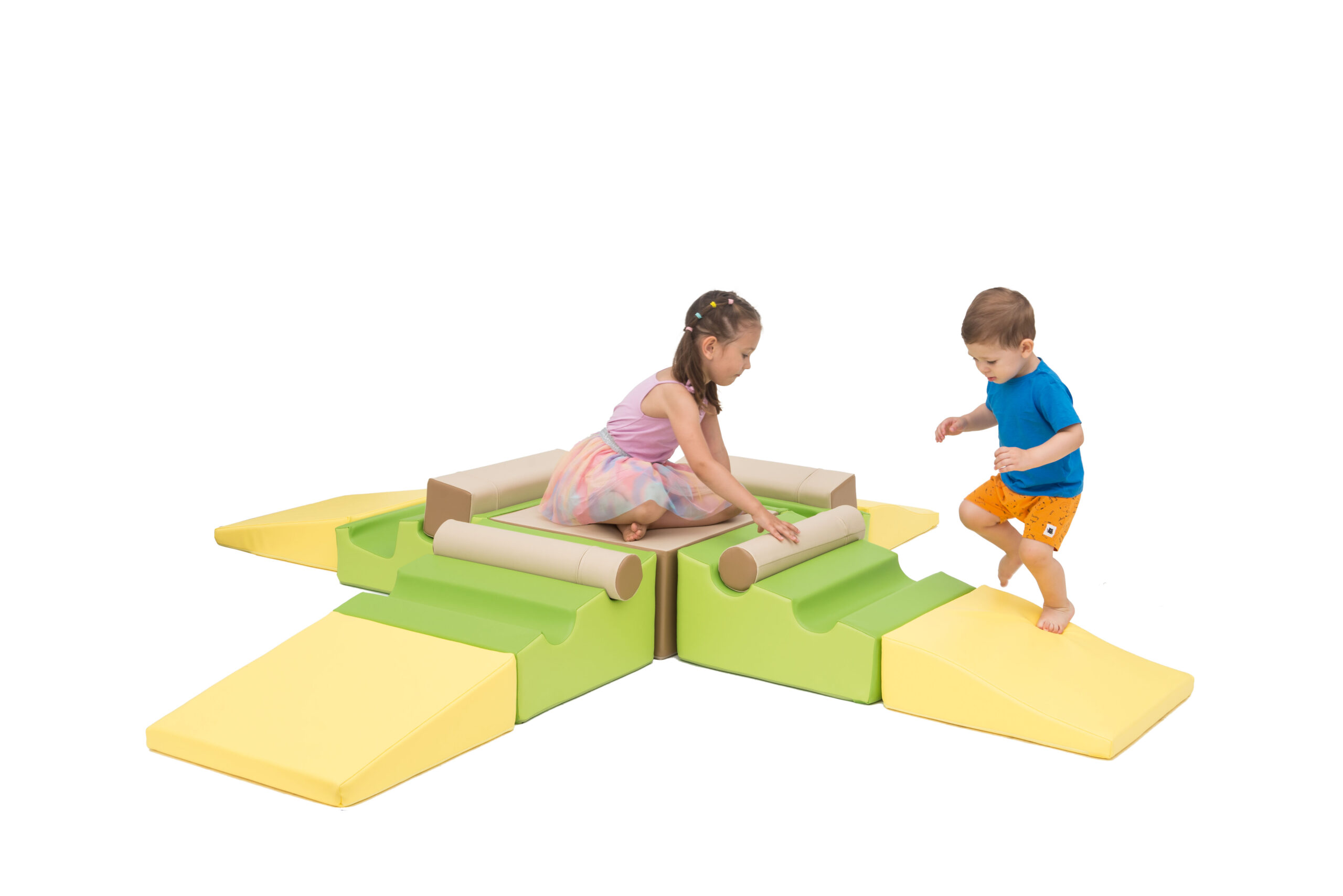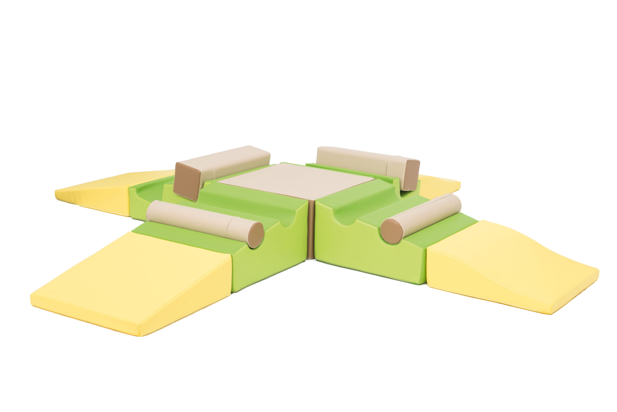 13 dalių putplasčio formelių rinkinys, skirtas lavinti mažųjų motoriką, koordinaciją, pusiausvyrą ir skatinti bendrą vystymąsi. Švelnios spalvos ir įvairios formos kviečia vaikus šliaužti, lipti ar įveikti kliūčių ruožus žaidžiant.
