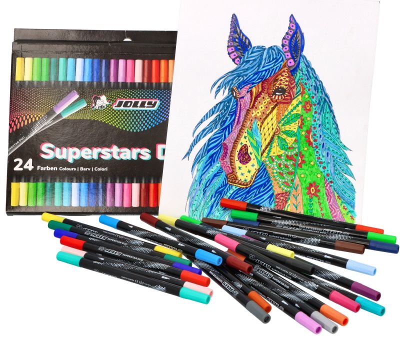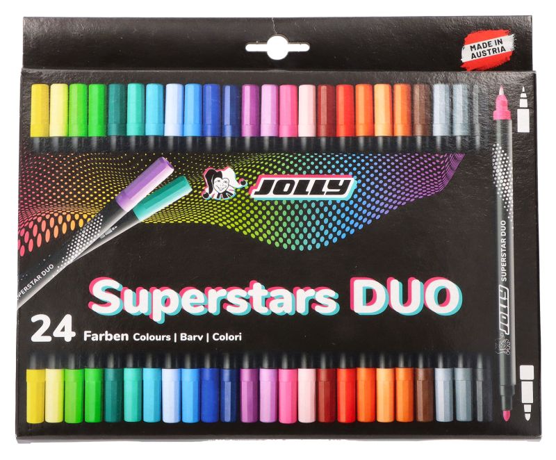 Du antgaliai – dar daugiau galimybių ir mažiau vietos pieštukinėje. „JOLLY SuperStars Duo” turi ir platų, ir rašomąjį galiuką – tai puikus pasiruošimas mokyklai.