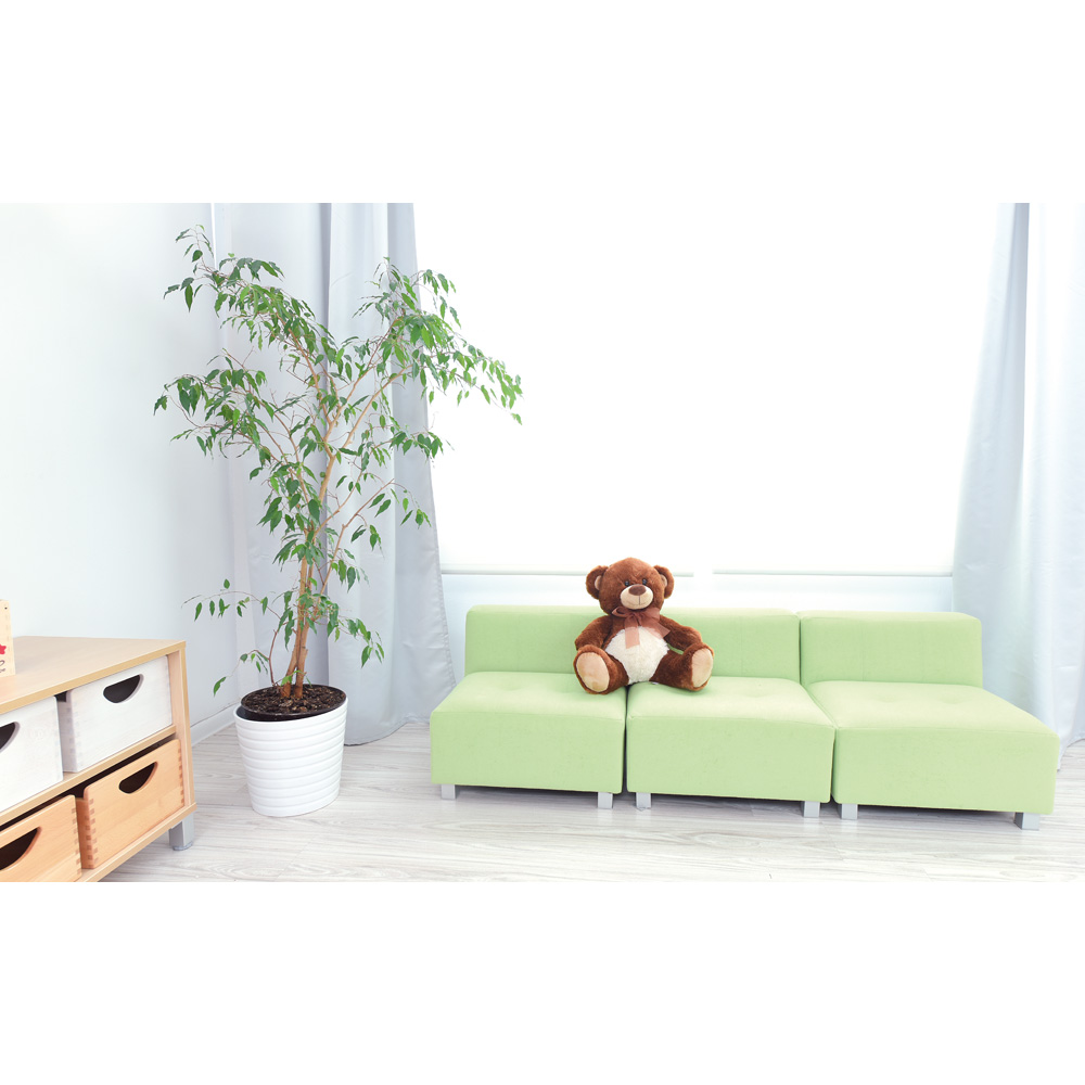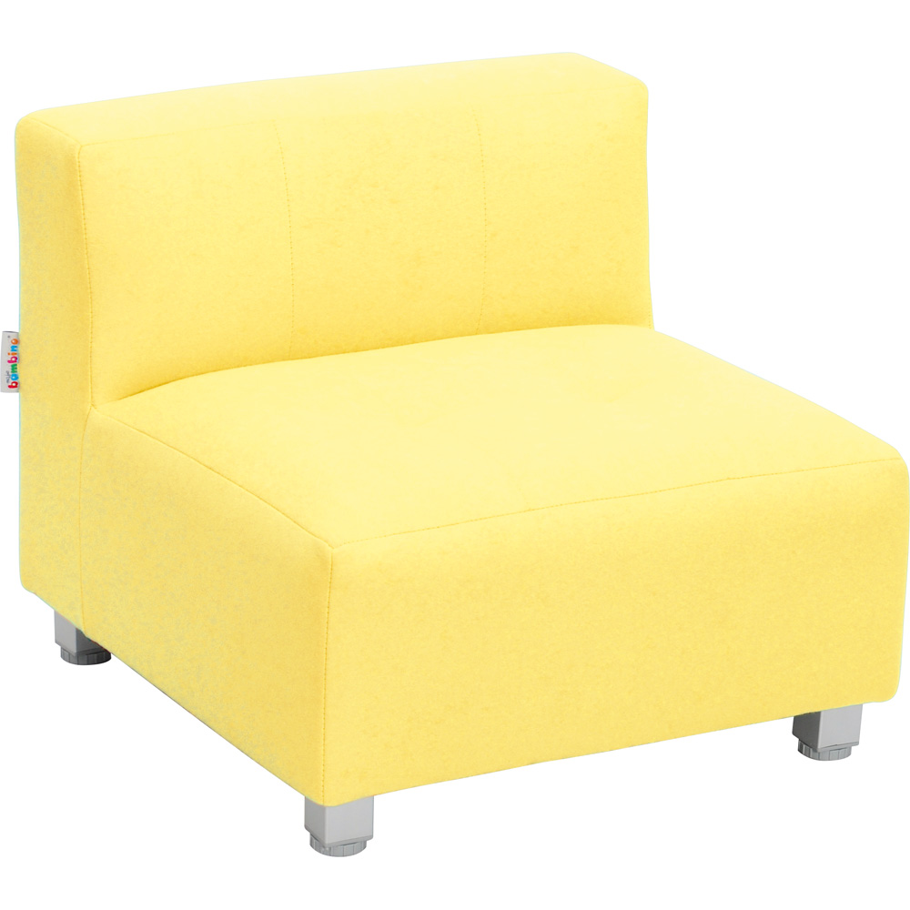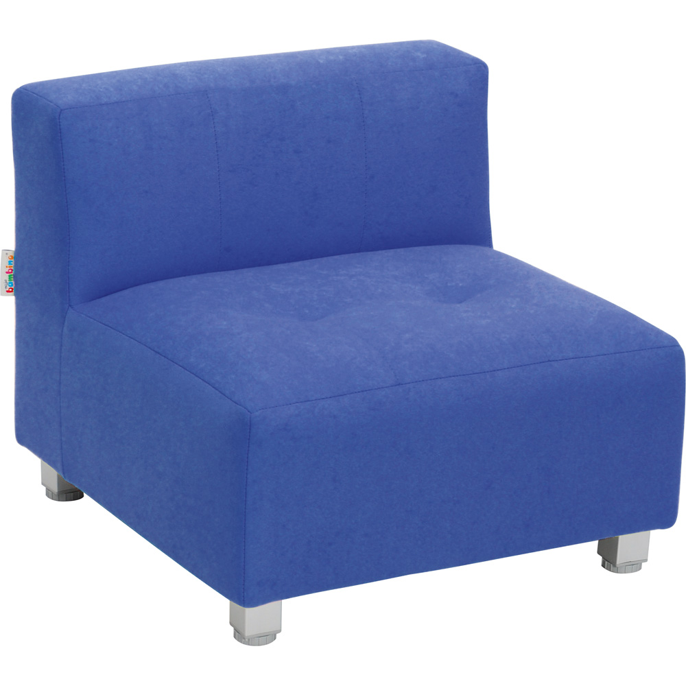 Kampinė sofa su atlošu. Estetiškai pagaminta sėdynė, aptraukta minkštu ir maloniu liesti apmušalų audiniu, matmenys pritaikyti pagal vaikų ūgį. Medinė konstrukcija užtikrina stabilumą ir patogumą mažiesiems naudotojams. Sėdynė pastatyta ant metalinių kojelių. Ji idealiai tinka žaidimams, poilsiui ir bibliotekos kampeliams.