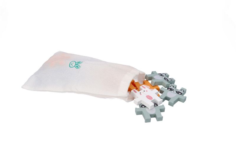 12 medinių kaladėlių su 4 skirtingais gyvūnais