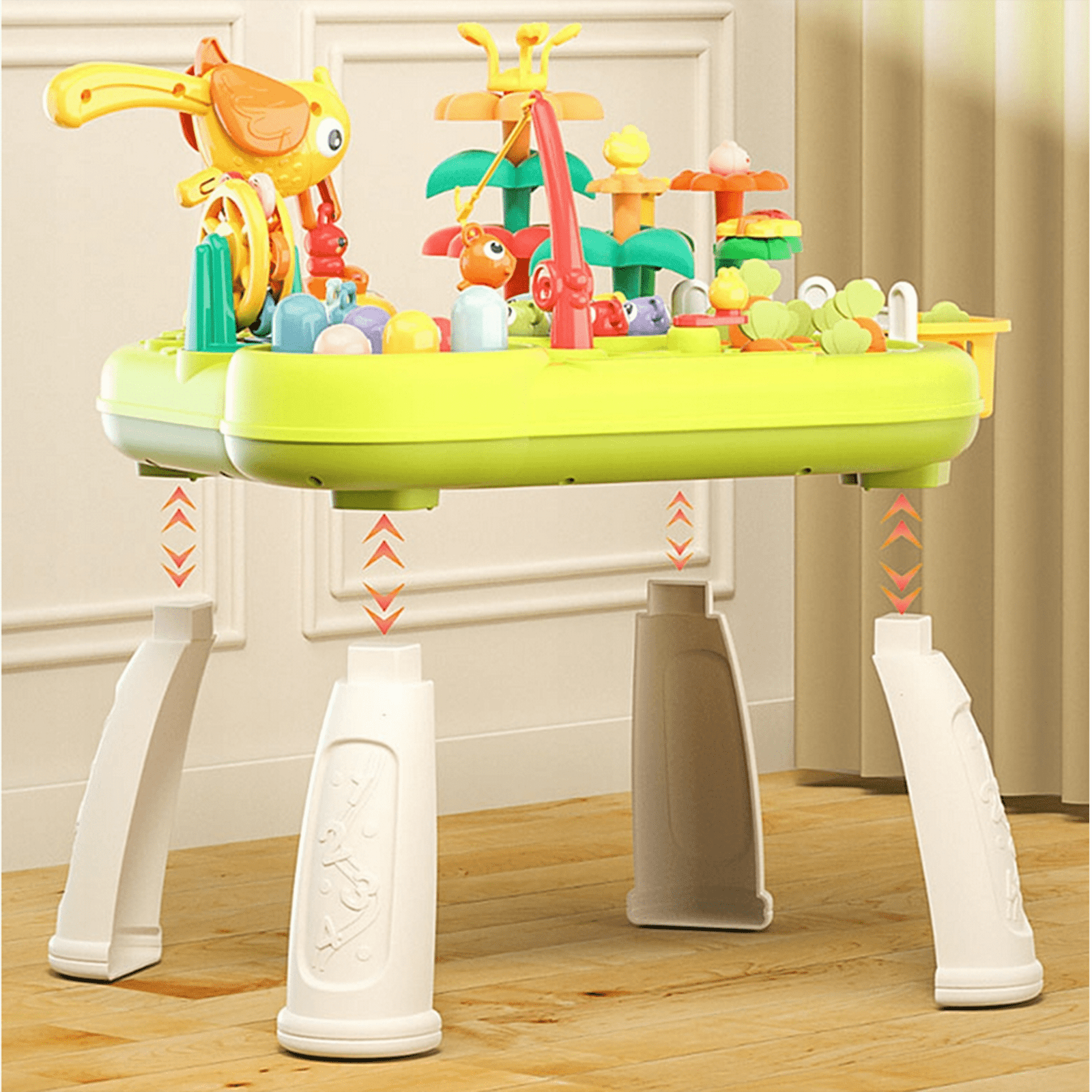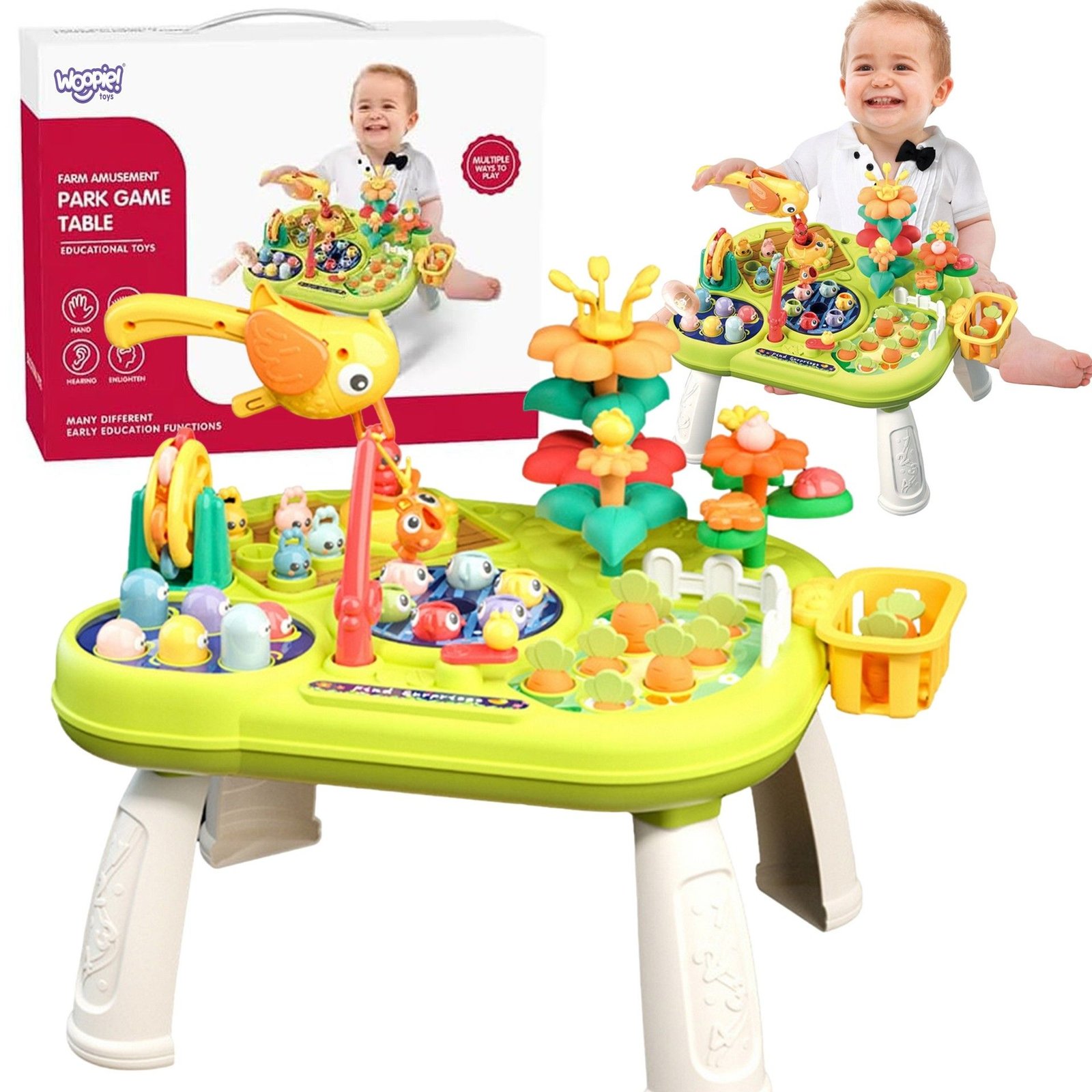 Daugiafunkcis žaidimų rinkinys, suteikiantis pramogą ir ugdantis vaiko įgūdžius. Įvairios veiklos – žvejyba, kirmėlių kalimas, morkų traukimas, gėlių dėlionė ir kt. – lavina smulkiąją motoriką, kantrybę, vaizduotę bei stebėjimo gebėjimus.