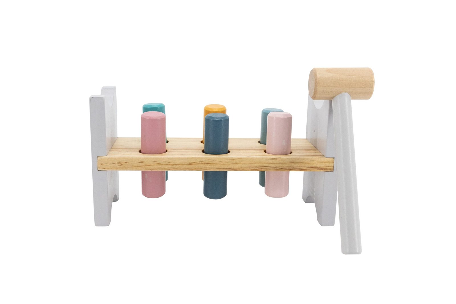 - – Rinkinį sudaro stovas, 6 spalvoti kaiščiai ir plaktukas.