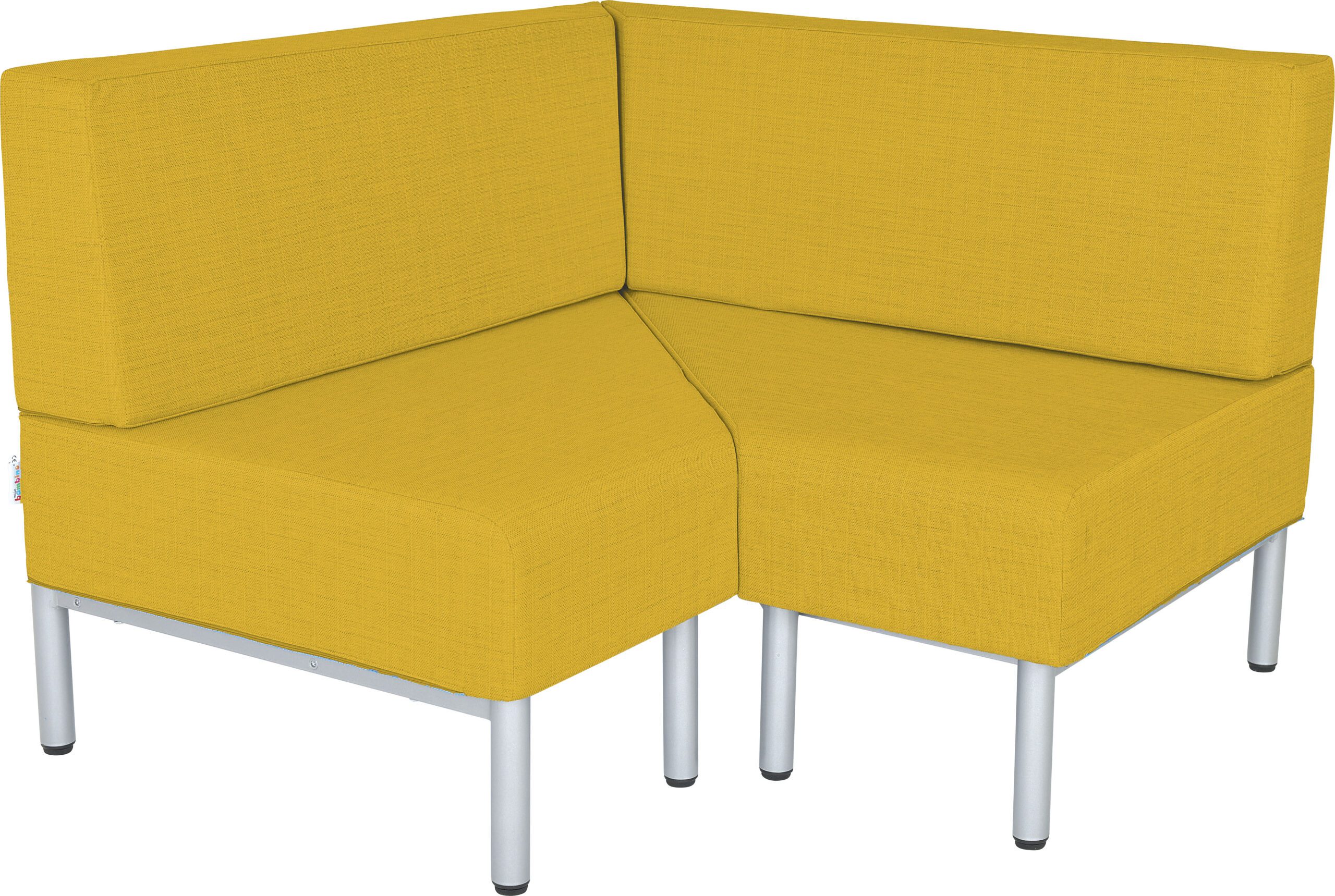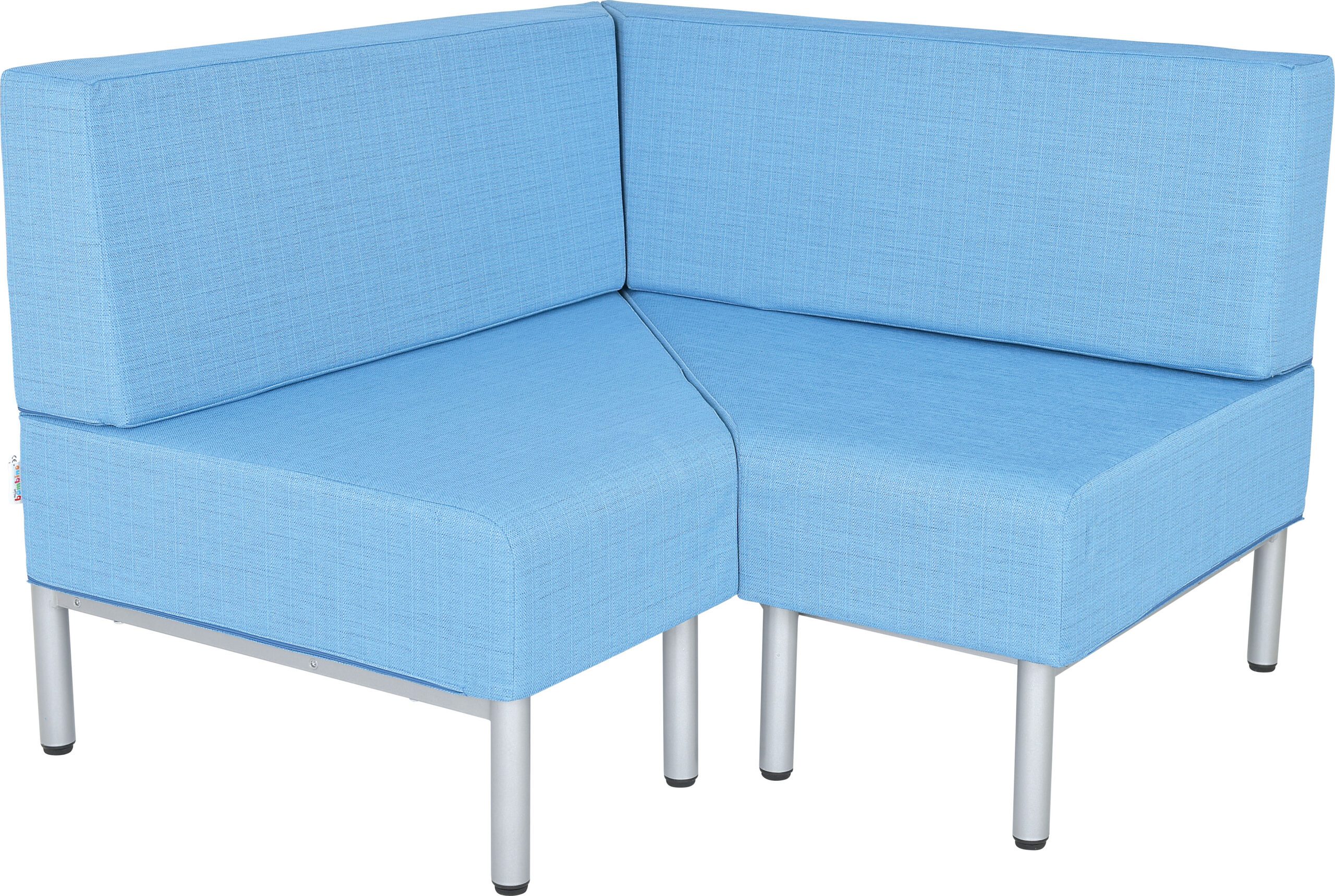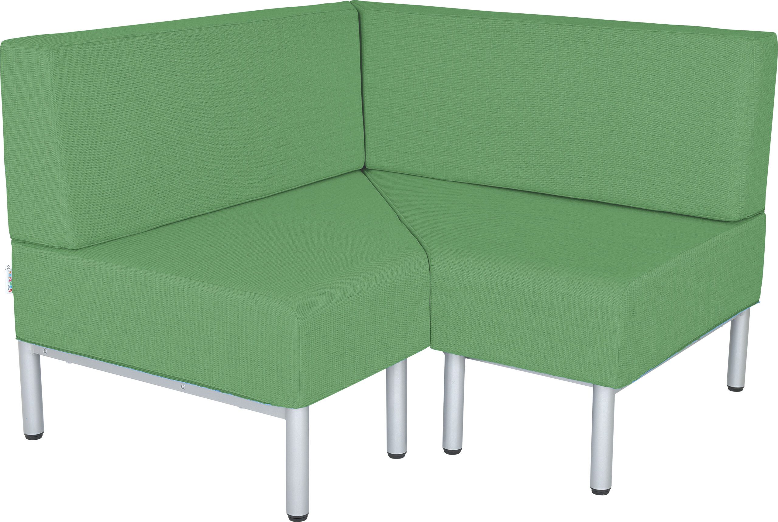 Modernus kampinis fotelis su reguliuojamomis metalinėmis kojelėmis. Dengtas patvariu, dėmėms atspariu audiniu – puikiai tinka darželiams ir mokykloms.