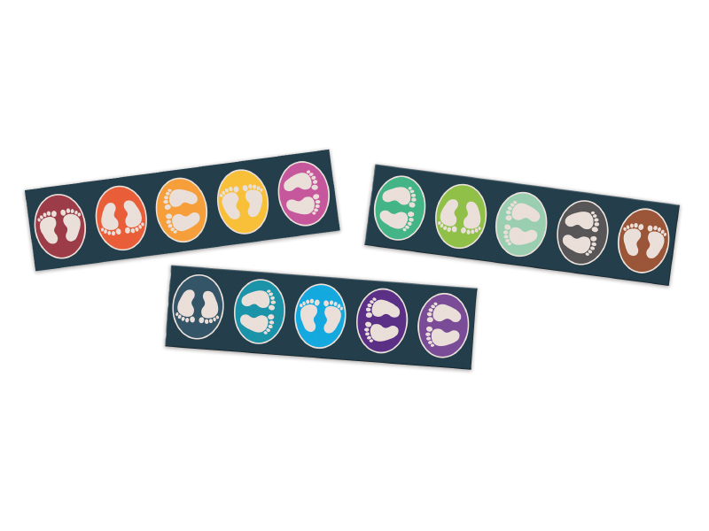 3 traukos kilimėlių rinkinys, kurį galima dėti ant žemės pagal skirtingus raštus. Jie moko sąmoningai kontroliuoti kūno padėtį ir skatina fizinį aktyvumą. Neslystanti apatinė pusė sumažina kilimėlio pasislinkimo riziką jį naudojant.
