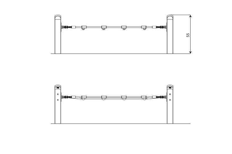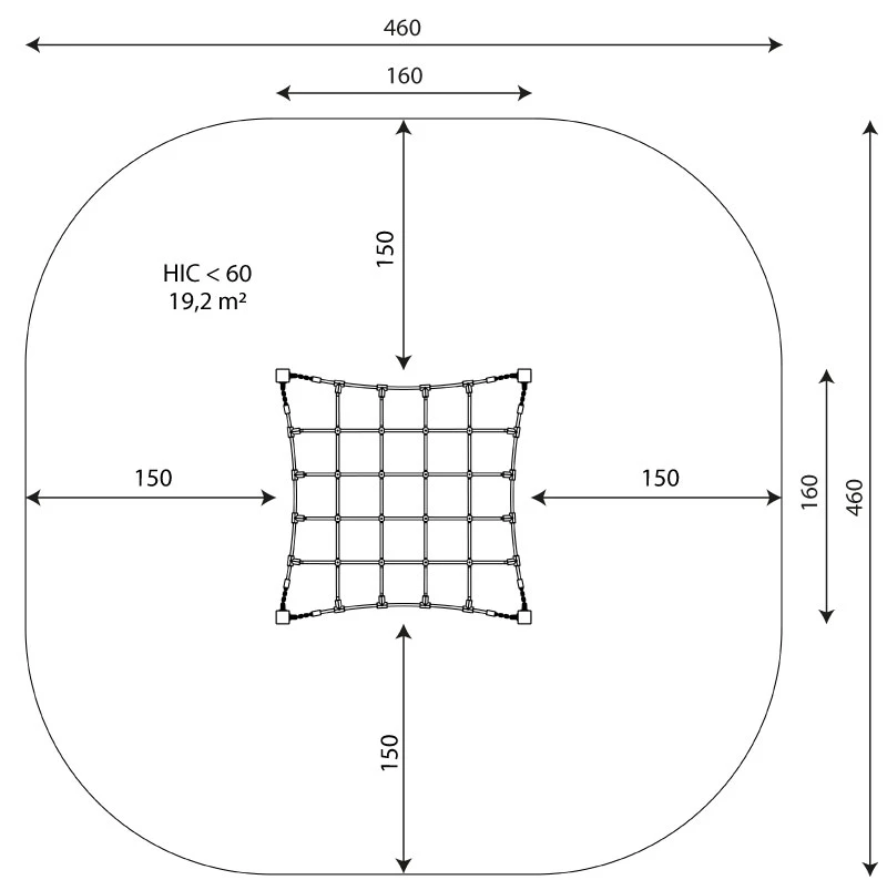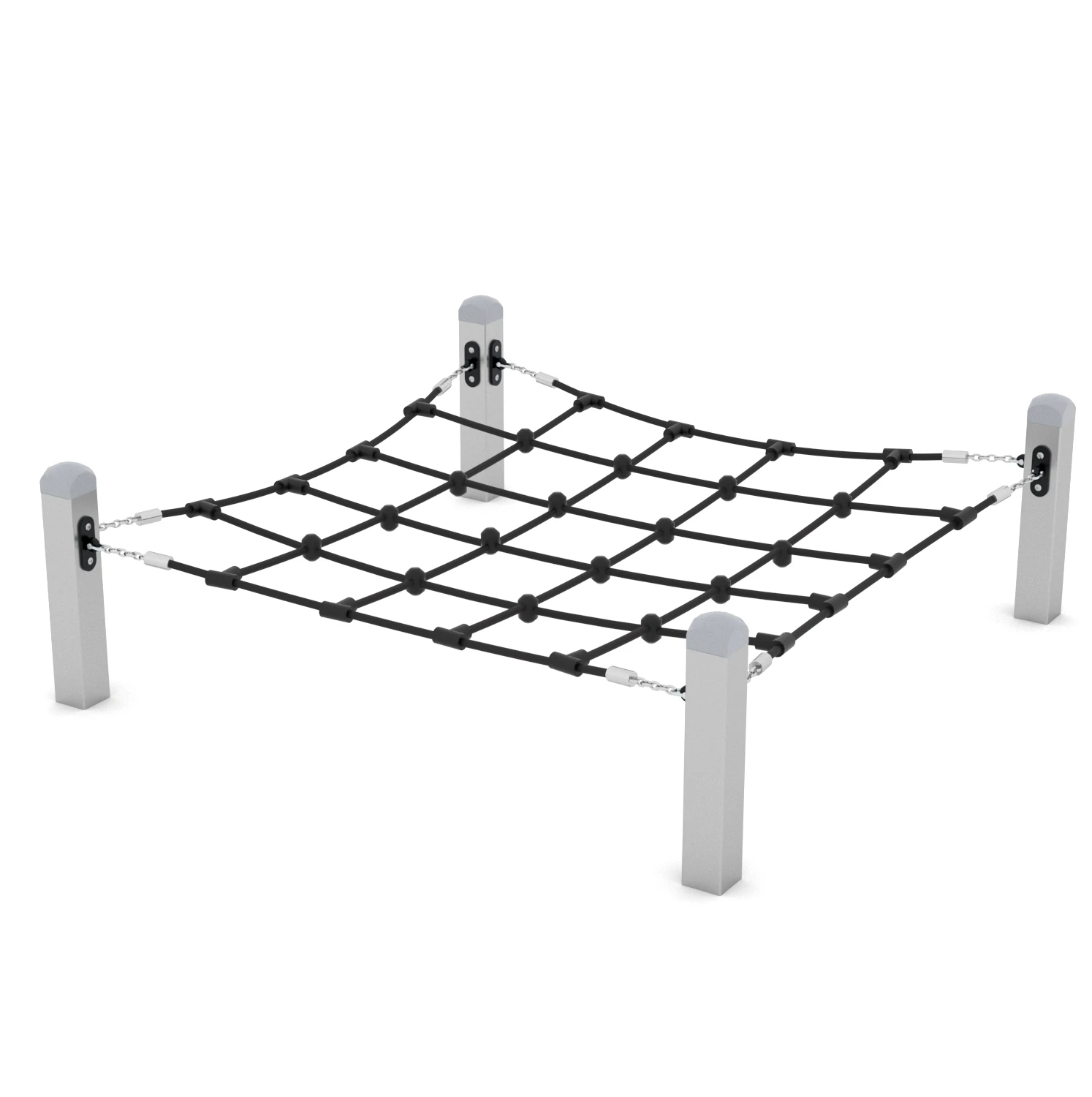 80 x 80 mm profilio plieninė konstrukcija, cinkuotabūdu arba pagaminta iš nerūdijančio plieno, Laipiojimo siena pagaminta iš patvarių neslidžių ir vandeniui atsparių HPL plokščių; Plieninės virvės iš PP pynės, sujungtos su patvariais plastikiniais elementais, iš nerūdijančio plieno arba aliuminio, Gumos arba polipropileno PP, saugūs dangteliai ant konstrukcijos viršaus, Nerūdijančio plieno strypai ir turėklai, Kalibruotos nerūdijančio plieno grandinės, apsaugančios nuo pirštų įstrigimo, varžtai, uždengti plastikiniais dangteliais arba nerūdijančio plieno varžtais, Patvarūs laipiojimo akmenys, pagaminti iš poliesterio dervos su mineraliniais užpildais