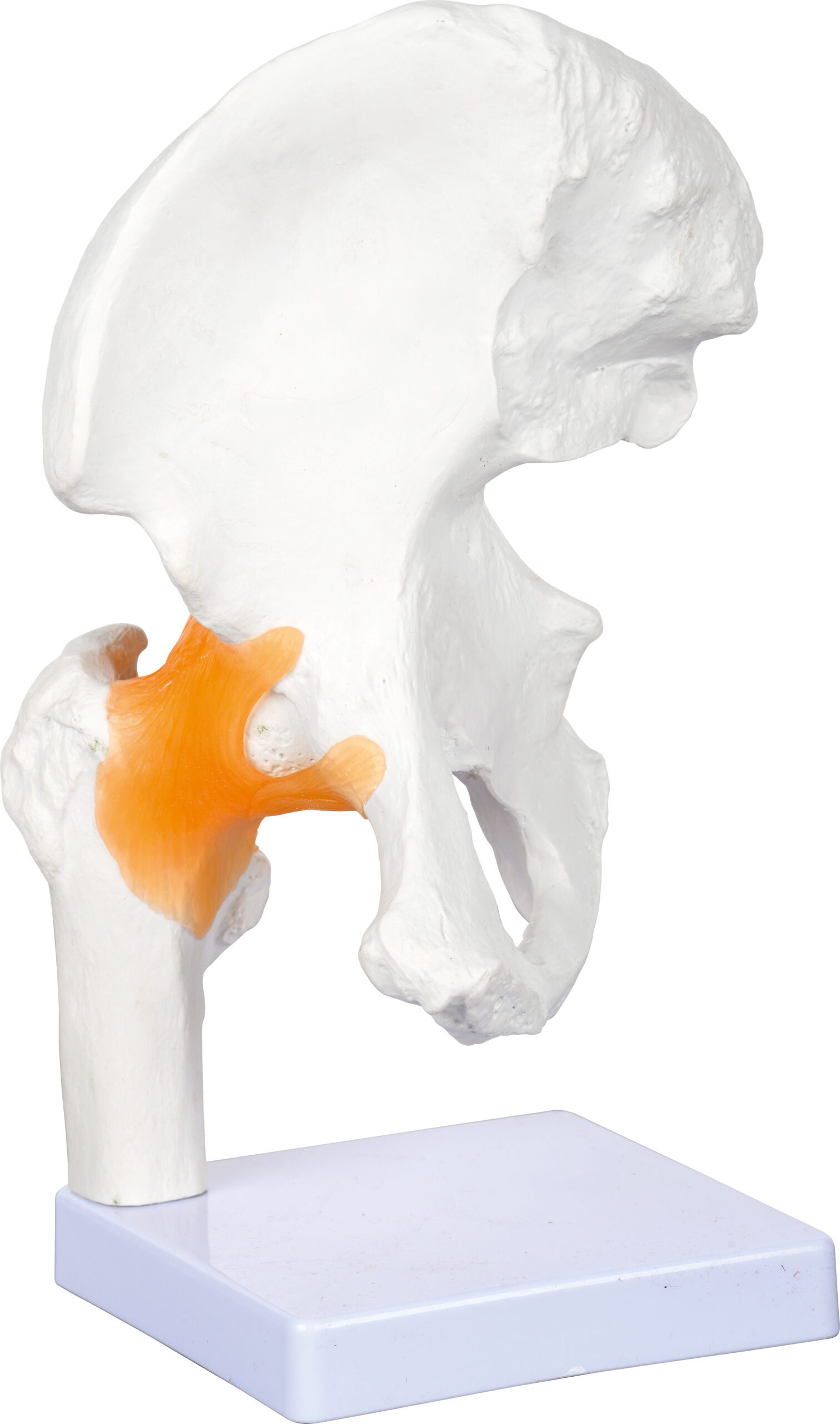 Judantis natūralaus dydžio anatomijos modelis vaizduoja klubo sąnario sandarą ir veikimą.