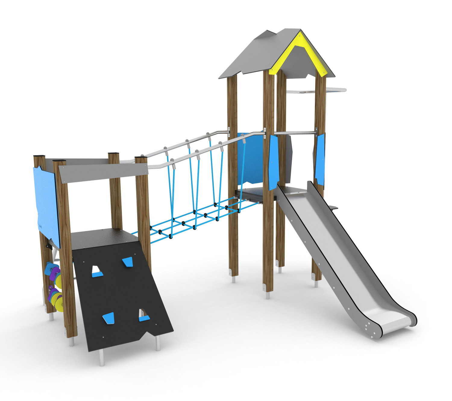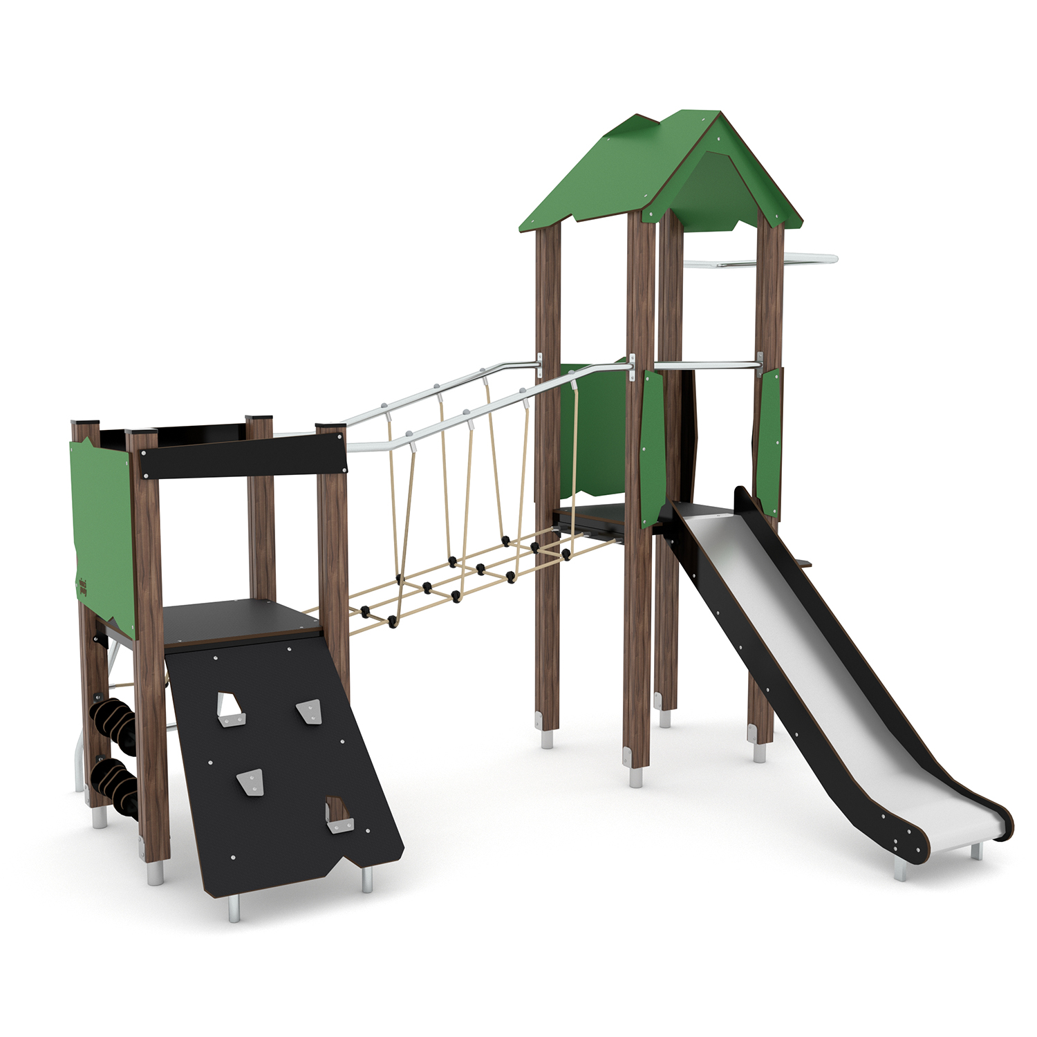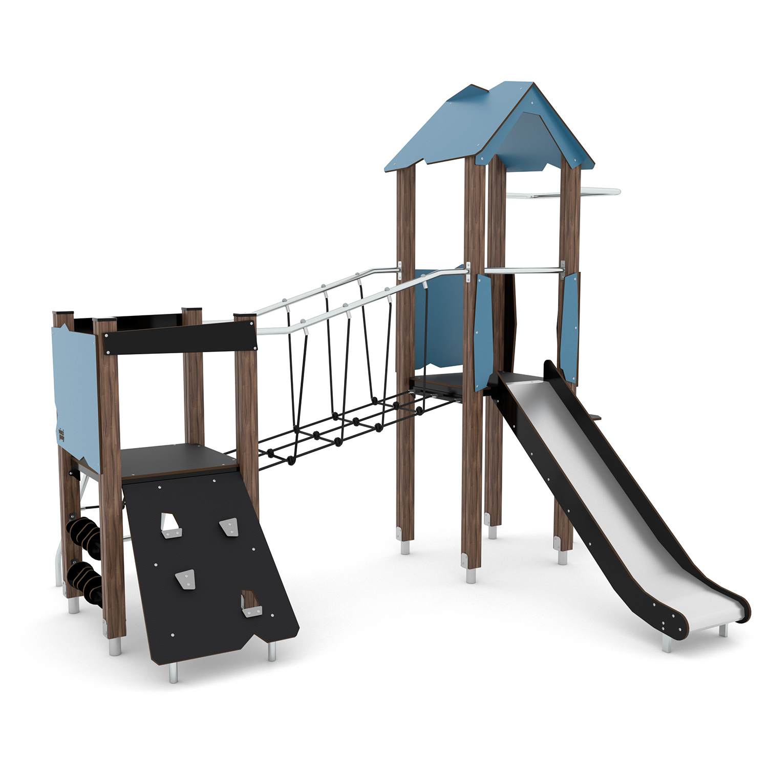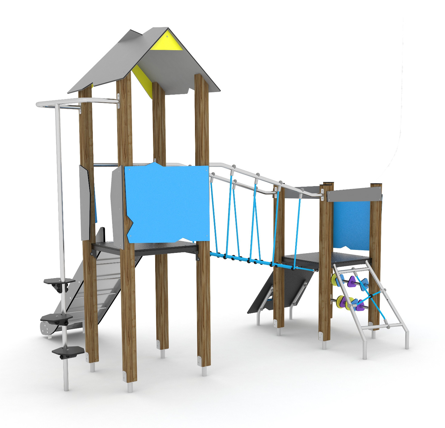 Kategorijos: Kompleksinės žaidimų aikštelės nuo 3 metų, Lauko žaidimų įranga