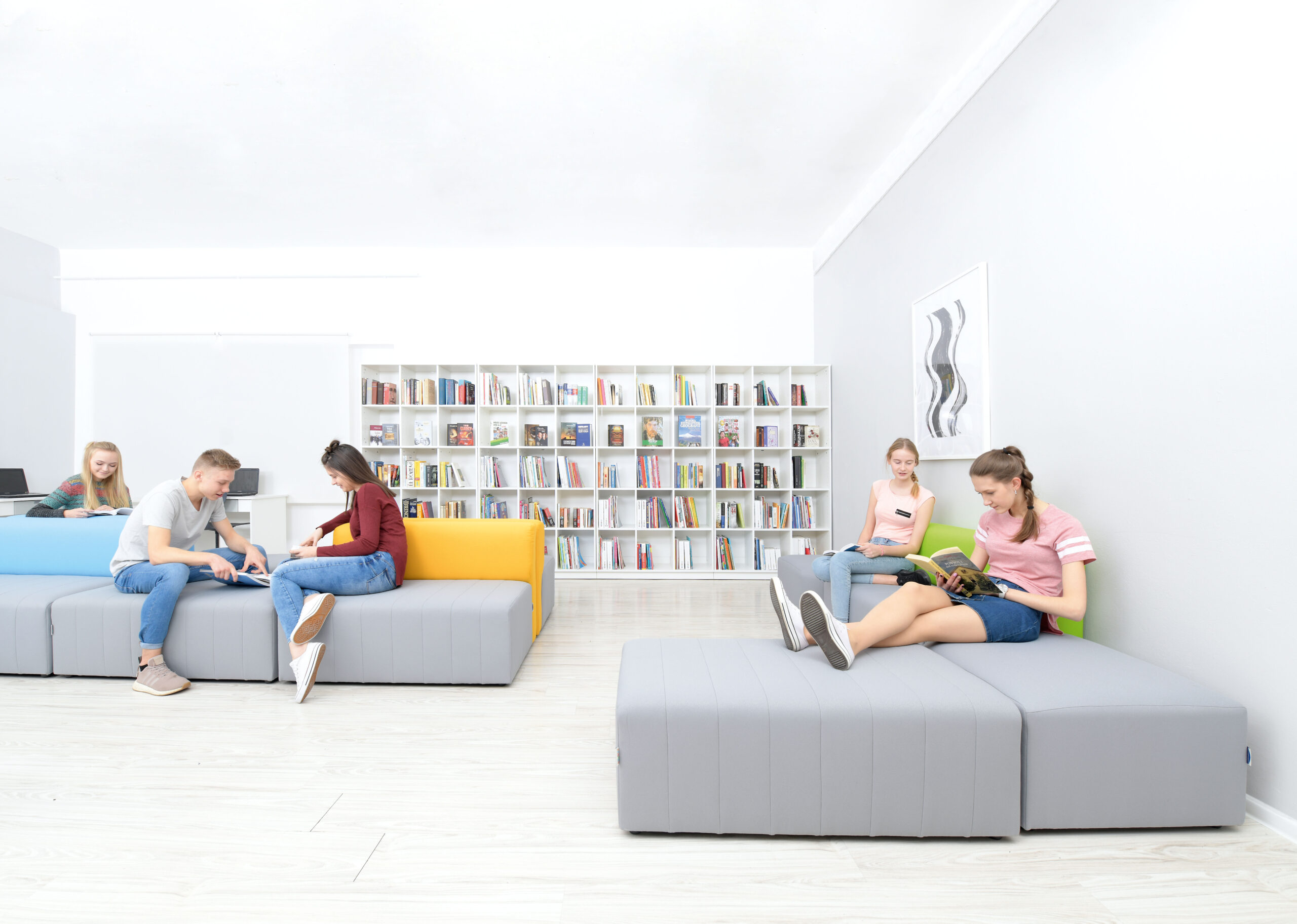 Sėdimosios dalys pagamintos iš putplasčio ant medinio karkaso. Aptrauktos nedegiu audiniu, kuris yra saugus, patvarus ir lengvai prižiūrimas. Puikiai tinka poilsio zonoms, ugdymo įstaigoms ar viešosioms erdvėms.
