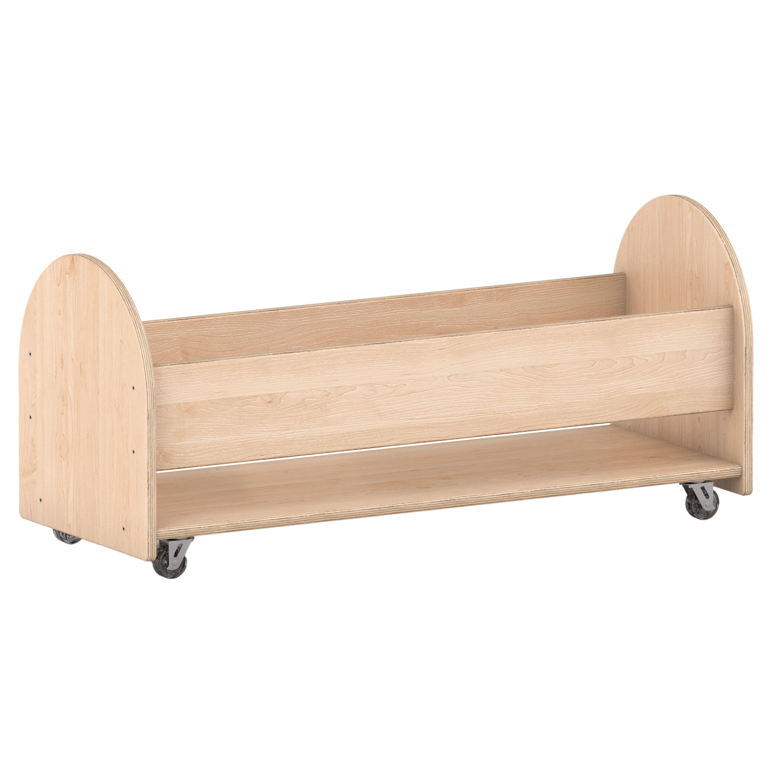Iš lakuotos faneros pagamintas pagalvėlių stovas, kuriame patogu laikyti 10 vaivorykštinių pufų. Įrengti 4 ratukai, todėl visą konstrukciją galima lengvai perkelti ant grindų.