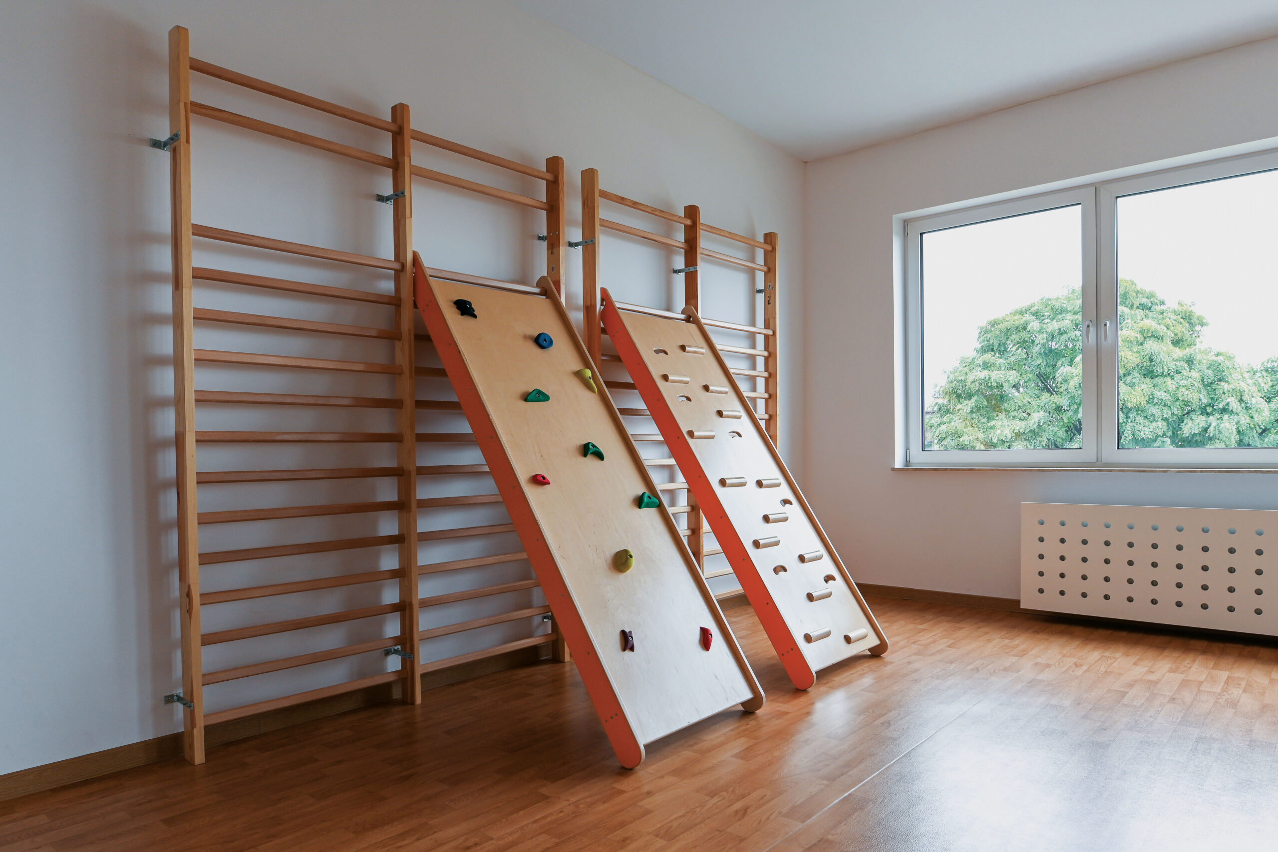 Laipiojimo sienelės pagamintos iš 18 mm storio faneros (šonai iš 25 mm storio faneros). Kiekvienoje sienelėje siūloma skirtinga aukščio įveikimo forma: laipiojimo sienelė su akmenimis arba su skylėmis ir medinėmis sijomis, arba virvinės kopėčios. Sienas labai lengva naudoti – tereikia atremti jas į įprastas gimnastikos kopėčias taip, kad kablys tvirtai laikytųsi ant skersinio. Taip taip pat galima reguliuoti sienelės kampą.