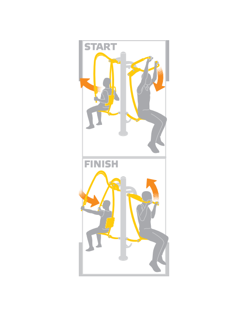 Treniruoklis skirtas krūtinės, pečių ir rankų raumenims lavinti. Pritaikytas naudotojo svoriui iki 130 kg. Vienu metu gali mankštintis du žmonės.