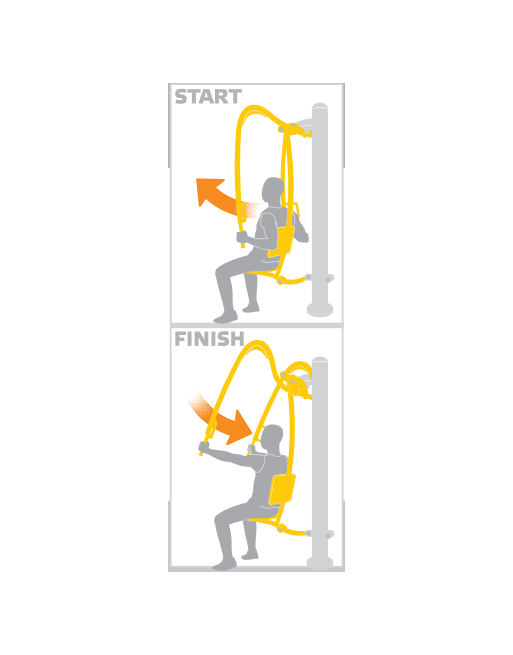 Treniruoklis skirtas krūtinės, pečių ir rankų raumenims lavinti. Pritaikytas naudotojo svoriui iki 130 kg. Vienu metu gali mankštintis du žmonės.