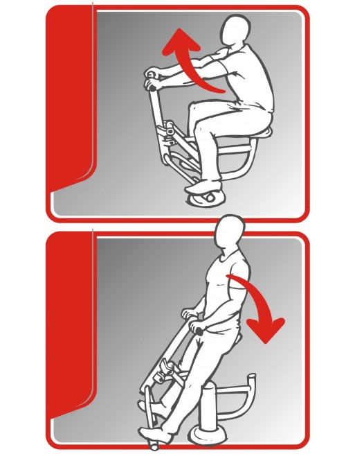 Rankenos, kėdutės, atramos, kamštukai, dangteliai pagaminti iš plastiko. Konstrukcija metalinė, įbetonuojama. Visos metalinės detalės padengtos cinko gruntu ir dažytos milteliniu būdu. Treniruoklis atsparus oro sąlygoms, vandalizmui.